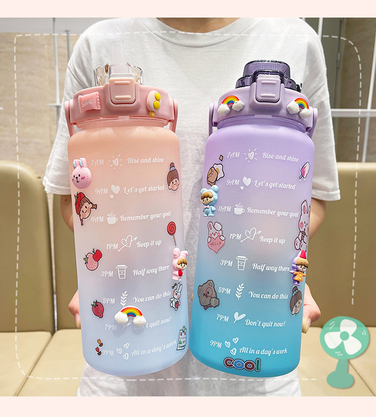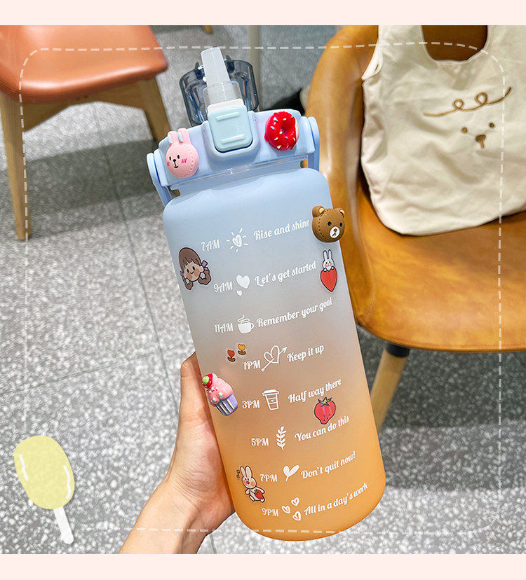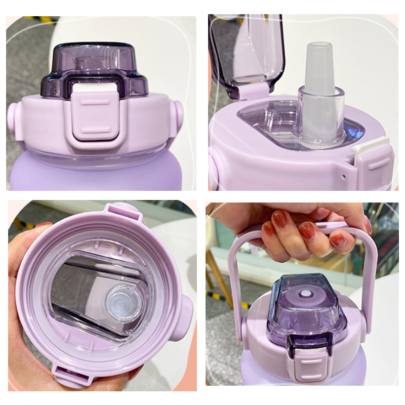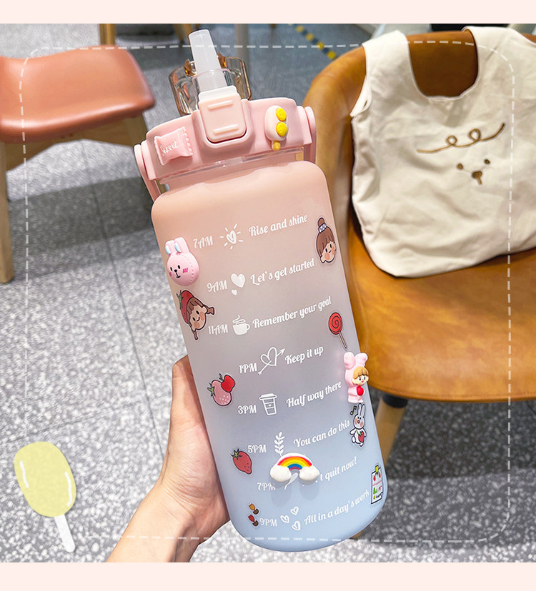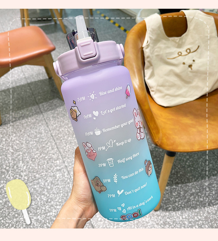 2Л бутылка для воды большой емкости с крышкой отскока, временной шкалой напоминание герметичная матовая чашка, Спорт на открытом воздухе и фитнес