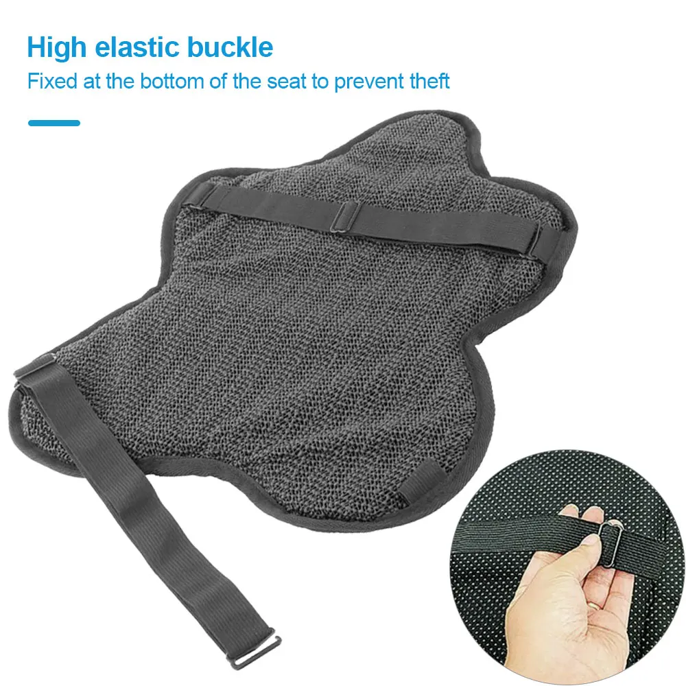 4. Супер практично: для того, чтобы Подушка сиденья мотоцикла сделала все, что вы хотите, мы используем противоскользящие частицы и двойные повязки для фиксации, так что сиденье лучше подходит для подушки сиденья. Нижняя часть подушки также разработана с уникальными противоскользящими частицами, которые более стабильны.