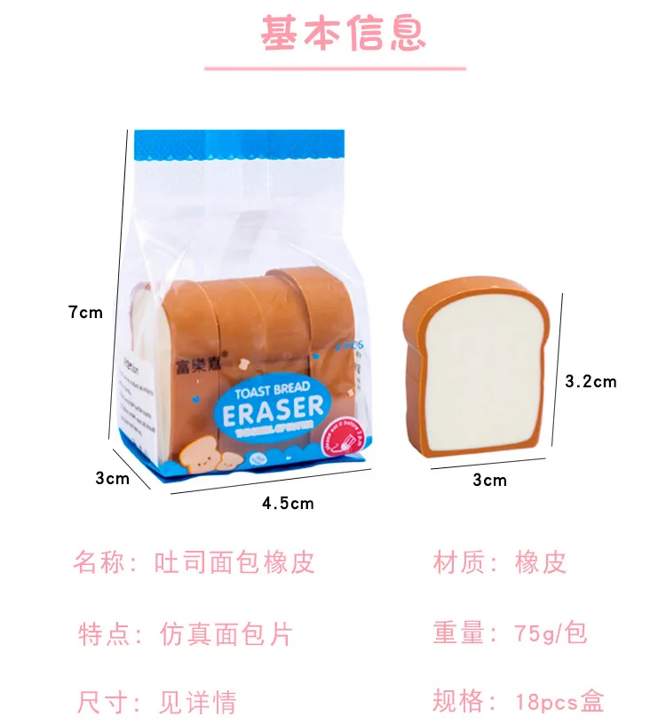 Name:Cute Lifelike Toast Tablets Eraser /Creative Learning Stationery/ Children Student School Prize Gift