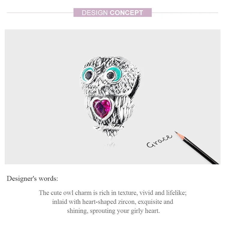 ❤[Описание] Очаровательная Милая Сова богата текстурой, яркой и реалистичной; Инкрустирована в форме сердца цирконом, изысканным и сияющим, вспыхивающим ваше девичье сердце.