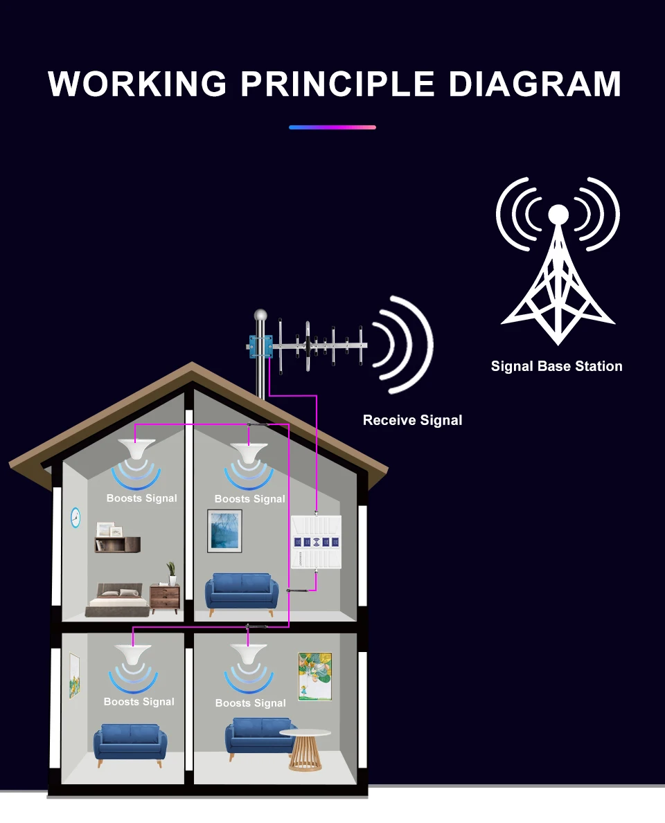 Больше не нужно беспокоиться о частоте сигнала. Это усилитель сигнала afive-band, который охватывает почти все частоты сигнала, используемые во всем мире.