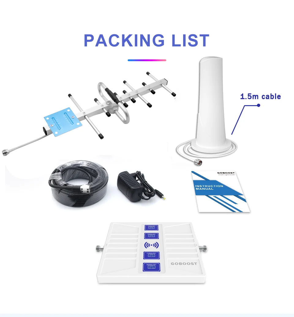 GOBOOST 4 диапазона LTE 4G 800 усилитель сигнала 900 1800 2100 700 2600 B28 B20 GSM 2G 3G сотовый усилитель ретранслятор сотовой сети Набор
