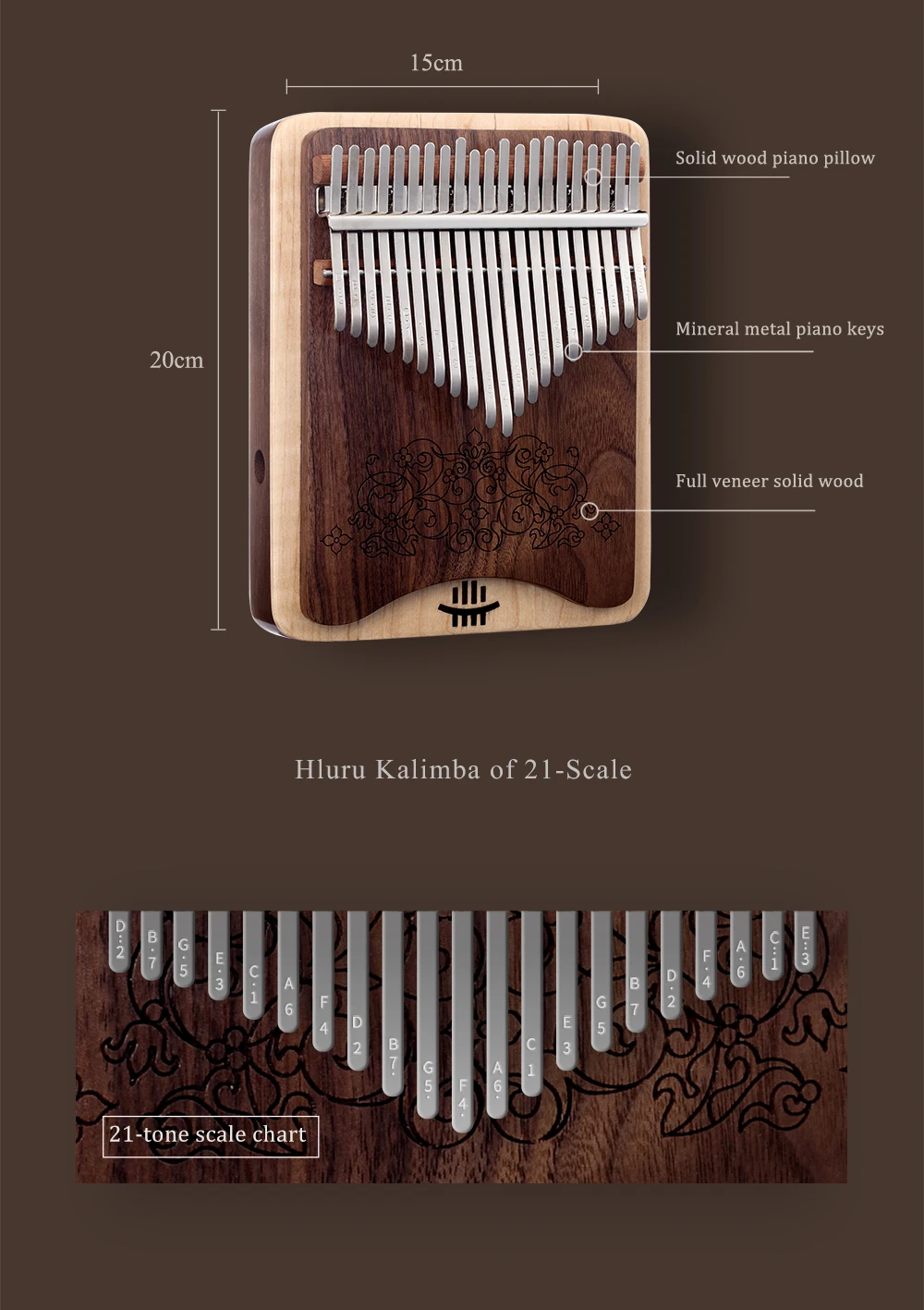 -Улучшенный диапазон 21 тона имеет 3 новых тройника по сравнению с 17 тонами, Модернизированная утолщенная интегрированная пластина, звук более эфирный и стабильный, нежный, он не только обогащает репертуар, но и делает его более ярким и деликатным.
