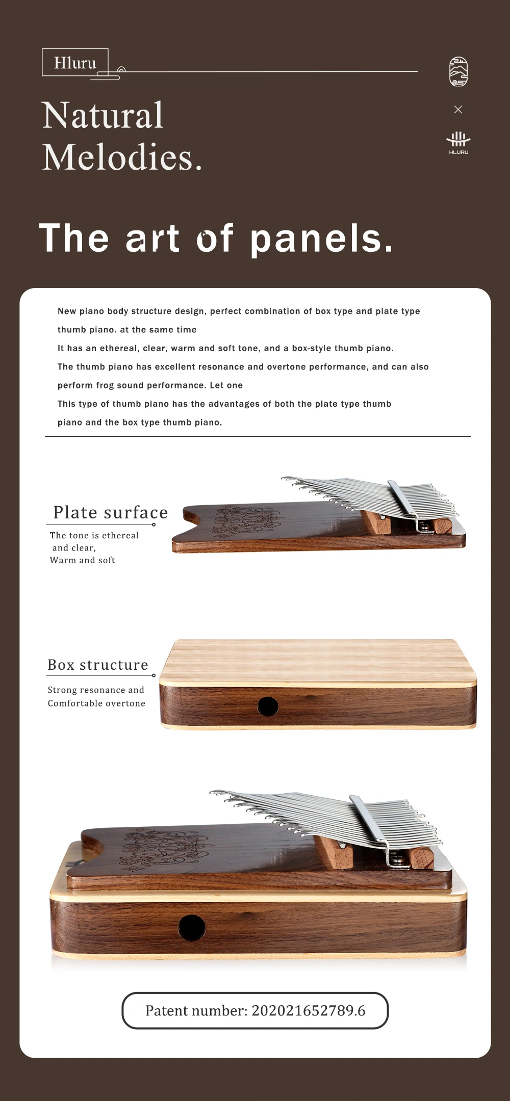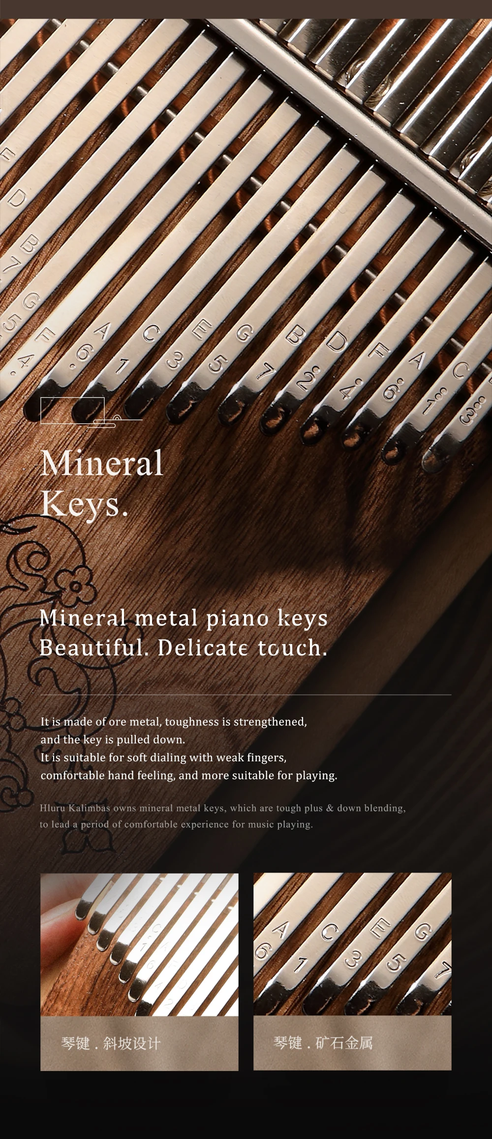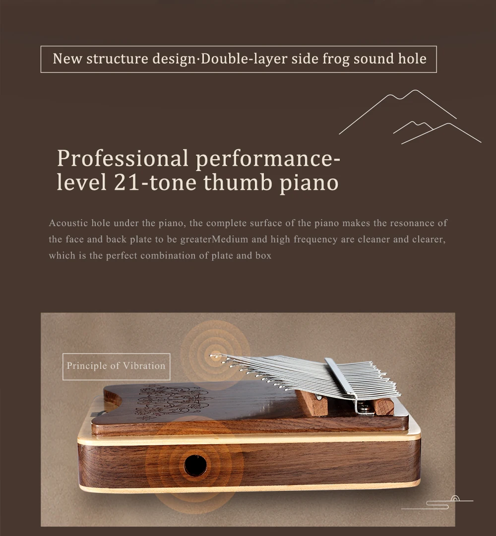 -Совершенно новая звуковая структура фортепиано большого пальца и конструкция звукового отверстия лягушки сбоку обеспечивают лучшую производительность звука лягушки через ладонь, реализуя звук лягушки во время игры на большом пальце. В то же время клавиши управляют звуковым отверстием для резонанса с корпусом пианино, что улучшает общее состояние и тонус, а тон более мягкий.