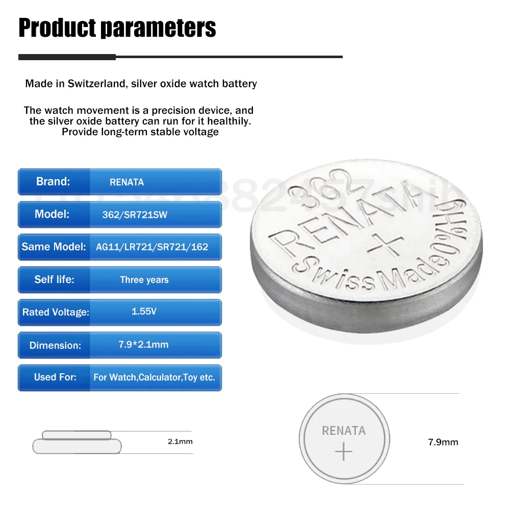50 шт. Renata 362 SR721SW AG11 LR721 162 1,55 V часы с оксидом серебра батарея для игрушечные весы калькулятор швейцарские сделанные кнопки монет