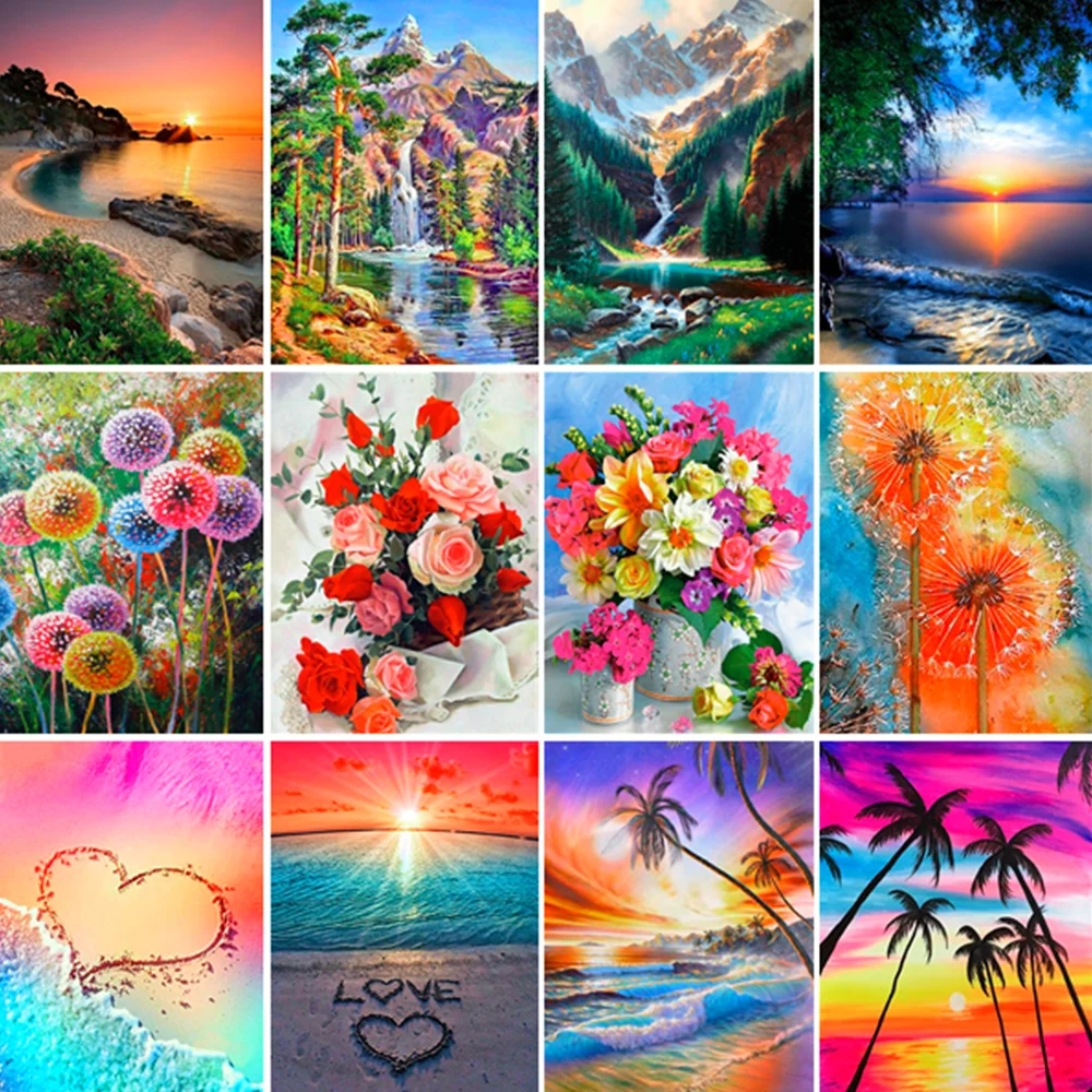 Пейзаж 5D DIY Алмазная картина цветок пляжное море полная круглая дрель Алмазная вышивка мозаика художественная картина Стразы Декор для дома