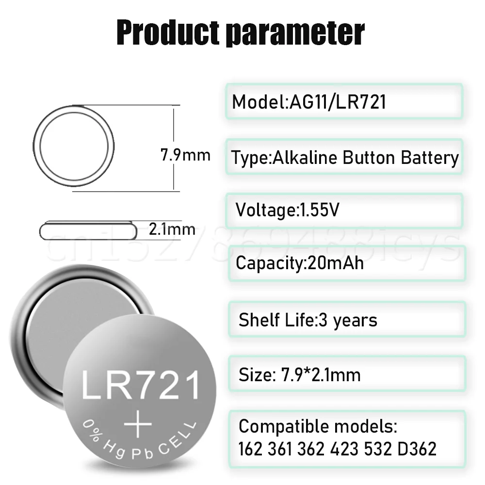 30 шт. AG11 362 LR721 SR721SW 362A L721F 162 V362 1,55 V Щелочная батарея для игрушек Часы пульт дистанционного управления Весы Кнопка монет