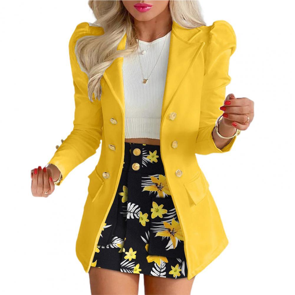 1 комплект, Блейзер, юбка, цветочный принт, двубортный приталенный костюм с отложным воротником, комплект на весну и лето