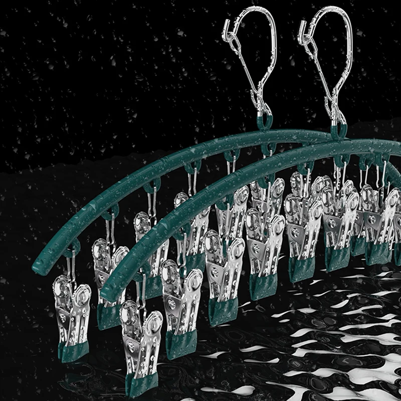 【Ветронепроницаемый крючок: Вешалка для носков имеет большие металлические крючки, можно повесить сушильную стойку в любом месте, профессиональный ветрозащитный дизайн крючка. Предотвращает выдувание одежды.