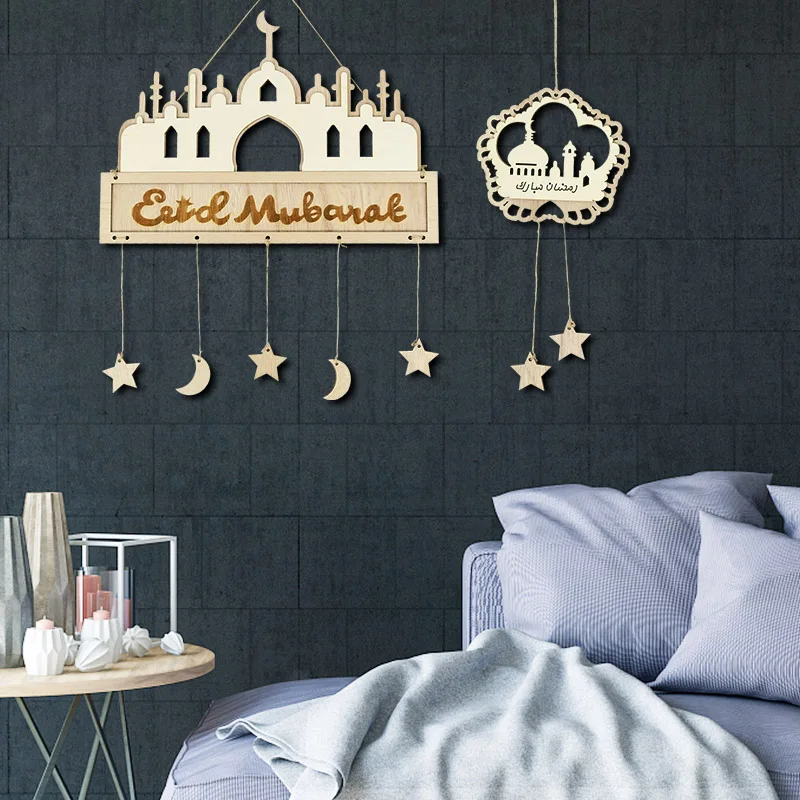3 шт. Eid Мубарак Декор деревянный ремесленный подвесной кулон Рамадан Kareem Deco для дома Исламские мусульманские Вечерние принадлежности Eid Al-Adha подарок