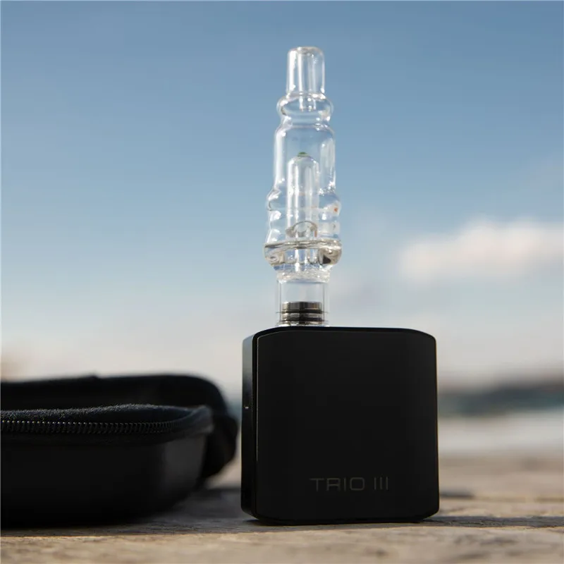 Испаритель Trio III использует метод конвекционного нагрева с сухой камерой трав, а восковая камера использует проводящее тепло. Кроме камер, этот портативный испаритель включает в себя адаптер с резьбой 510 для соответствия картриджей.