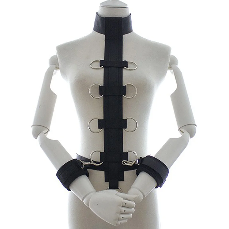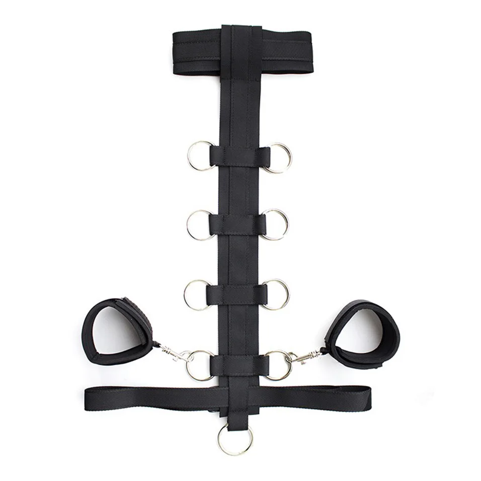 Стиль 2: Эта сверхмощная удерживающая система позволяет получить доступ к нескольким позициям только с одним ограничителем. Просто оберните воротник вокруг шеи и Защелкните ремень вокруг талии-они оба регулируются, чтобы соответствовать большинству размеров. Ремешок, похожий на позвоночник, имеет восемь металлических колец, их можно носить с туловища или сзади. Прикрепите манжеты к любому металлическому кольцу, чтобы связать запястья или лодыжки вашего партнера. Используйте как хогти, и ваш предмет не будет стараться избежать в ближайшее время.