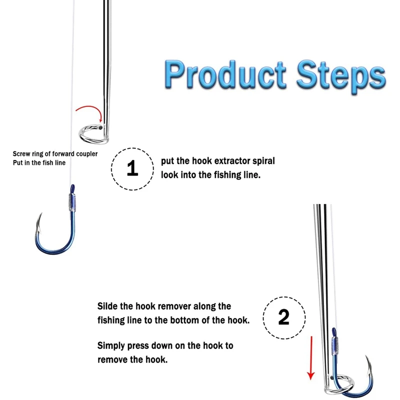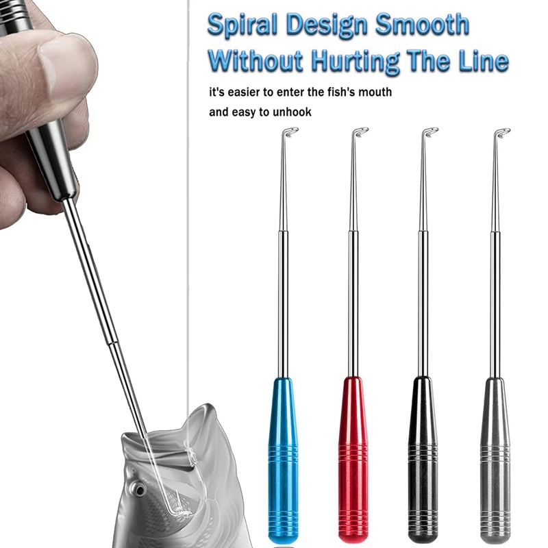 Спиральная конструкция экстрактора: рыболовный крючок, разборный набор, может быстро снять крючок с 360 градусов. Гуманизированная конструкция упрощает шаги по удалению крючка, экономит время крючка, защищает руки и уменьшает повреждение рыбы. Кольцо регулируется по размеру. Оборудование подходит для рыболовных линий и рыболовных крючков с орлиным когтем различной большой или толщины