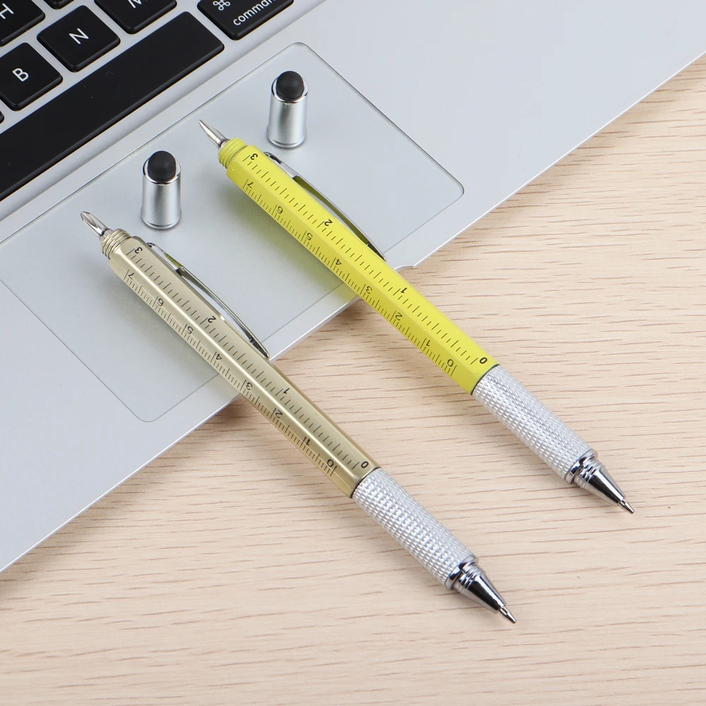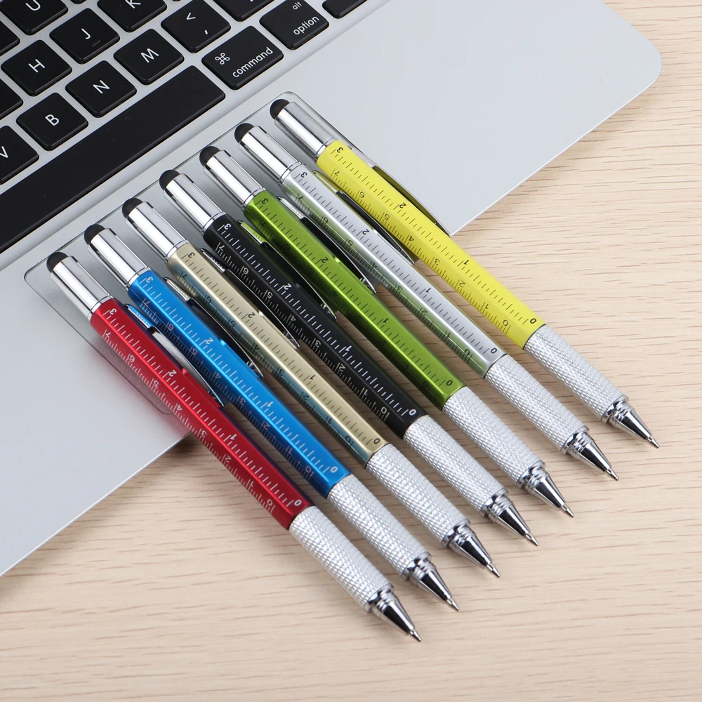 6 функций: Стилус емкостью для сенсорного экрана, шариковая ручка, весы и линейка, шлицевая отвертка, отвертка phillips, уровнемер