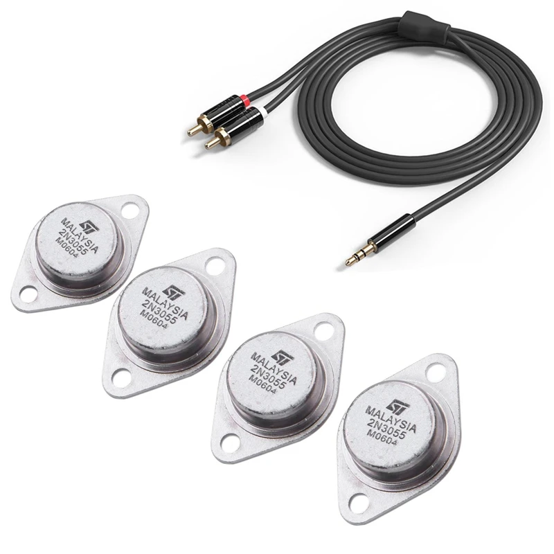 4 X 2N3055 15A 60V NPN AF Audio Power Transistor TO-3 With Jack 3.5Mm To 2 RCA Audio Cable 1M