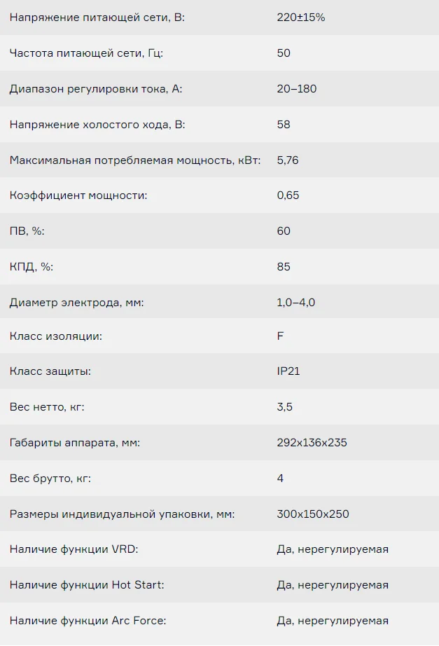Аппараты ARC 180 СE имеют компактную форму и малый вес, что особенно удобно при высотных и ремонтно-строительных работах. При работе инвертор обеспечивает легкий старт дуги, меньше брызг, стабильный ток и хорошую форму сварного шва.