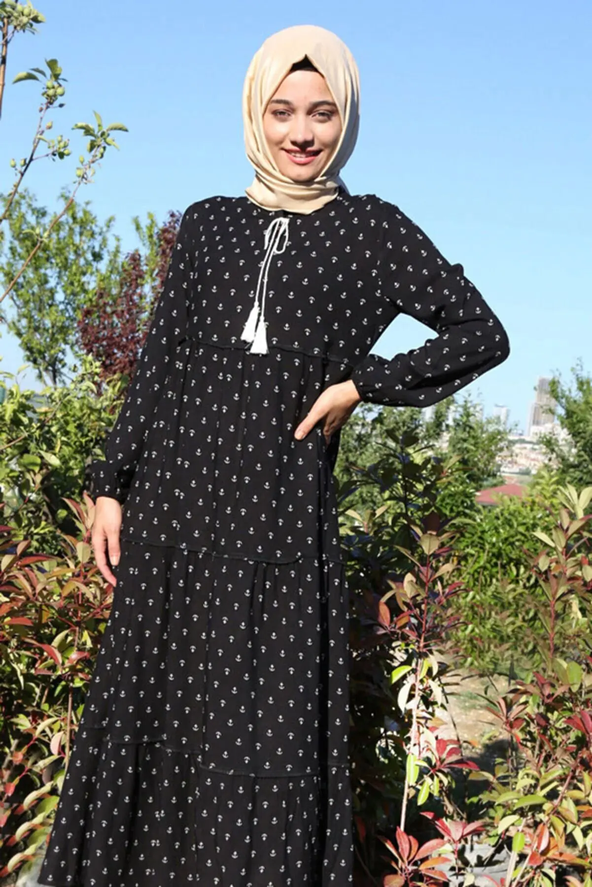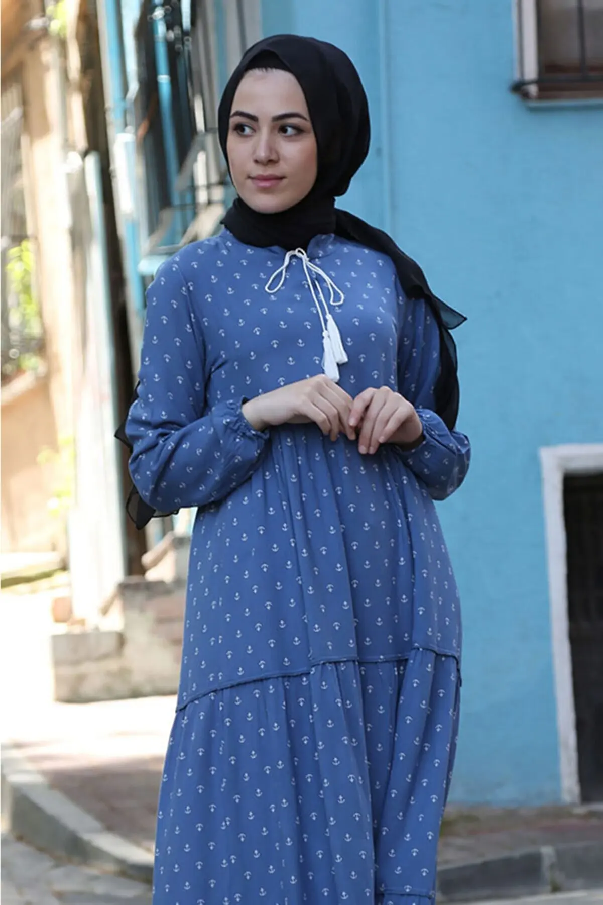 Женское хиджаб платье на шнуровке, прямые узоры в горошек с якорем
