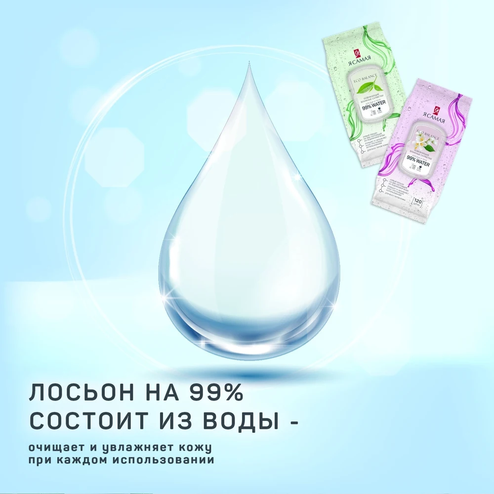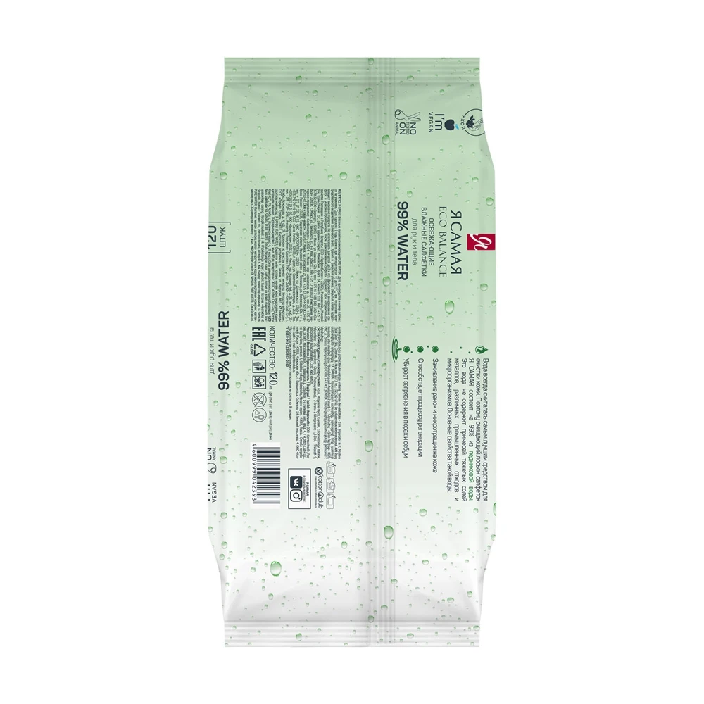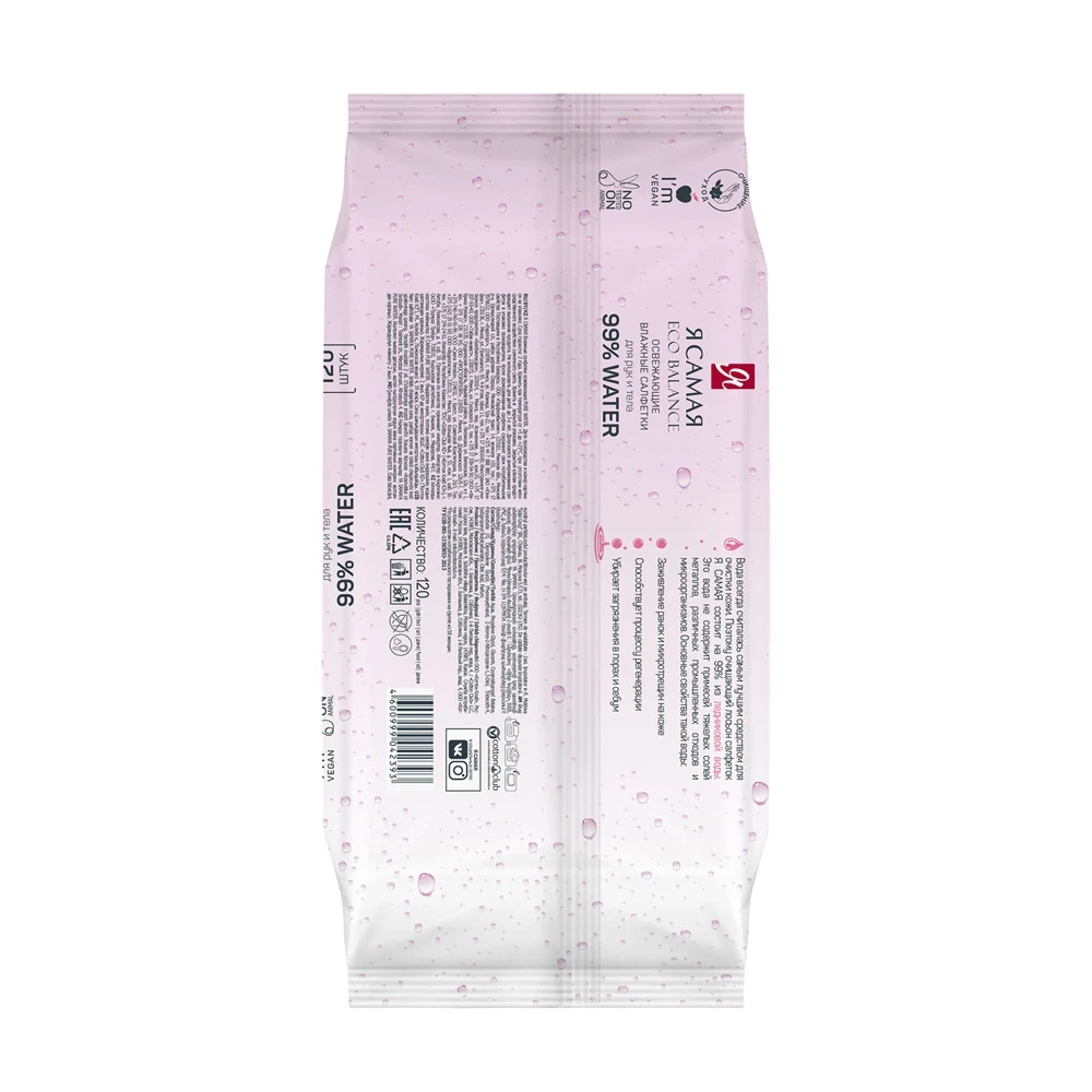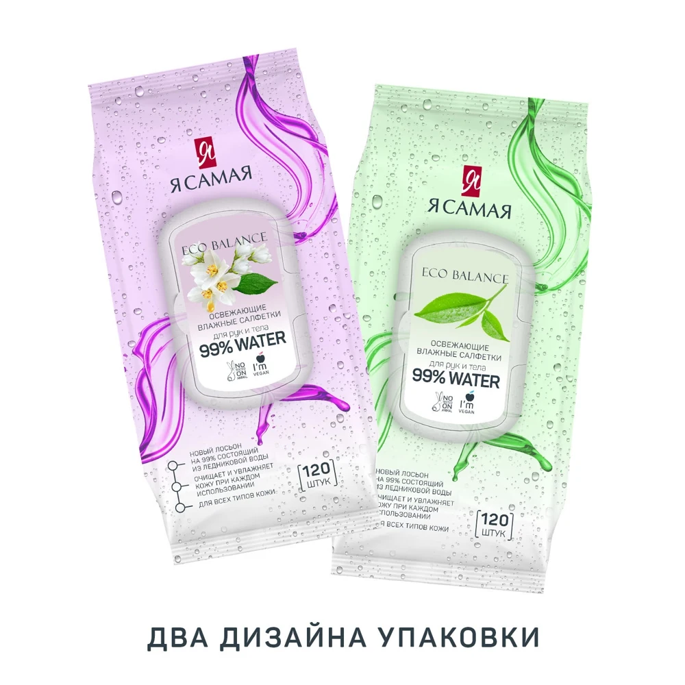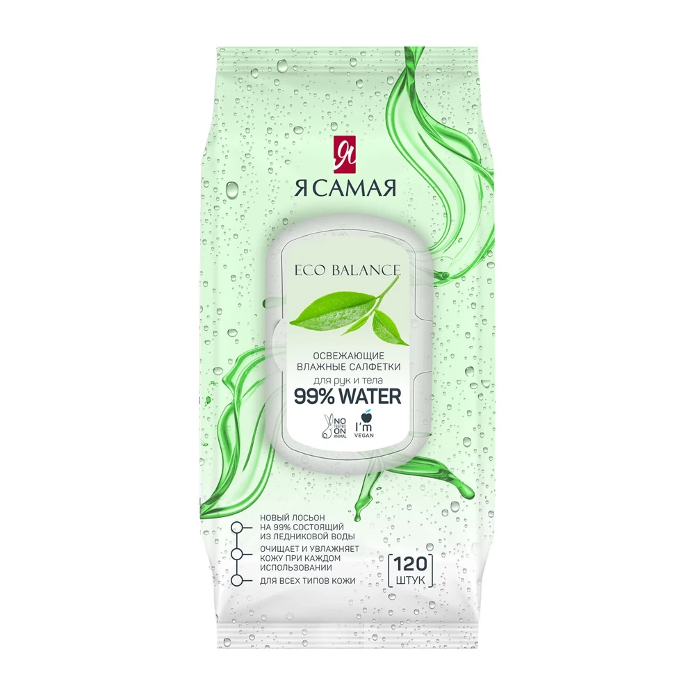 Набор влажных салфеток Я самая ECO Balance, 2 х 120 шт, 99% воды, освежающие, с крышкой
