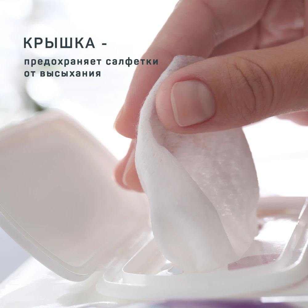 Биг-формат с крышкой, предохраняющей салфетки от высыхания, для длительного использования.