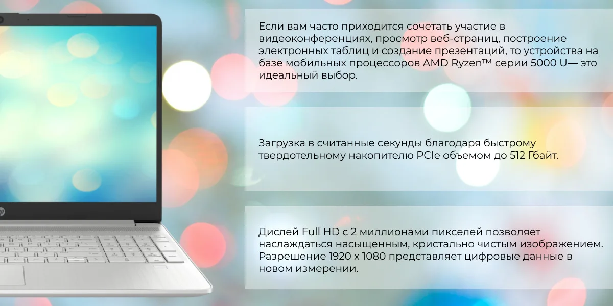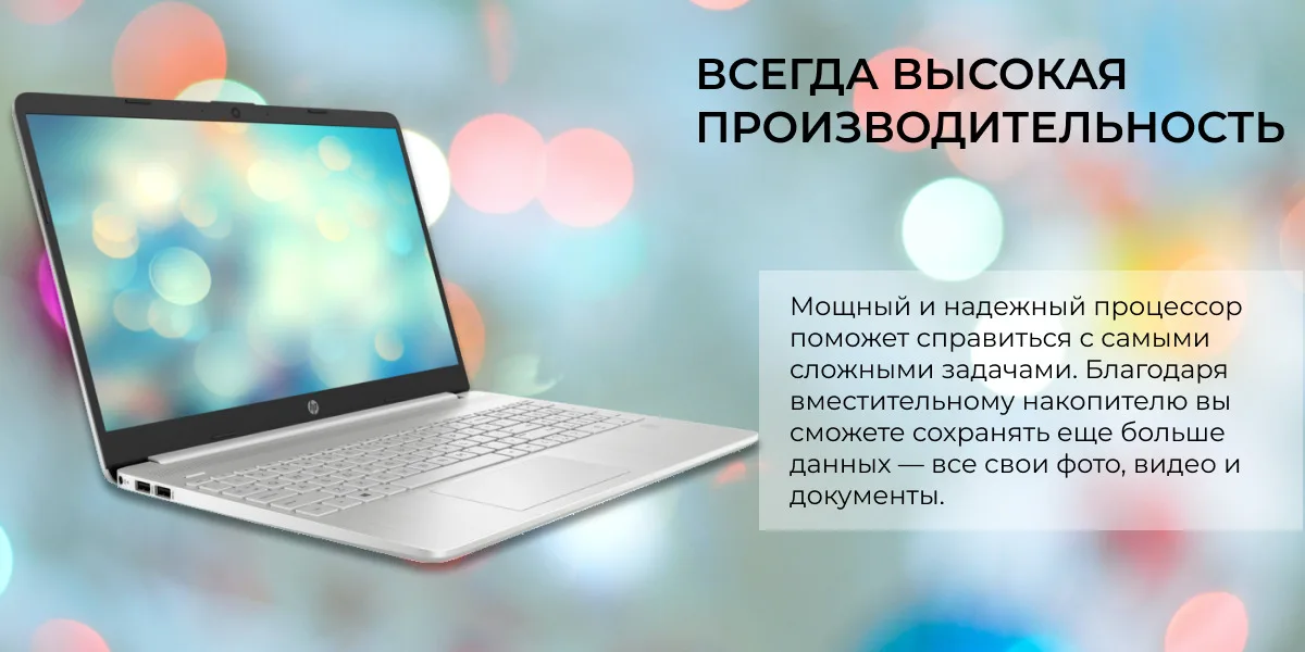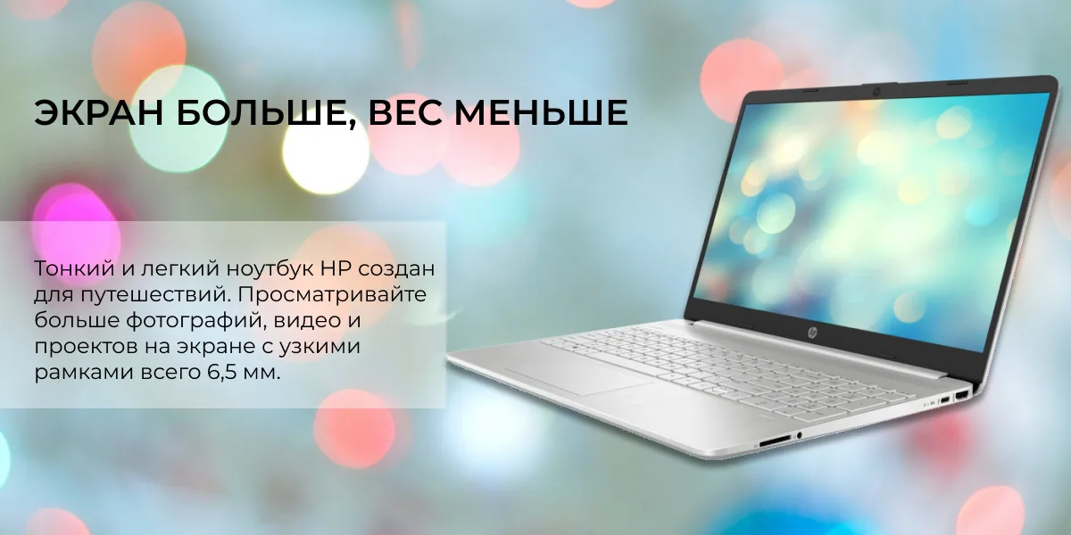 Тонкий ноутбук HP с экраном 15,6", узкими рамками и длительным временем работы аккумулятора позволяет сохранять высокую продуктивность и работать с удовольствием, где бы вы ни находились.