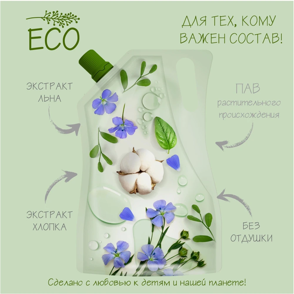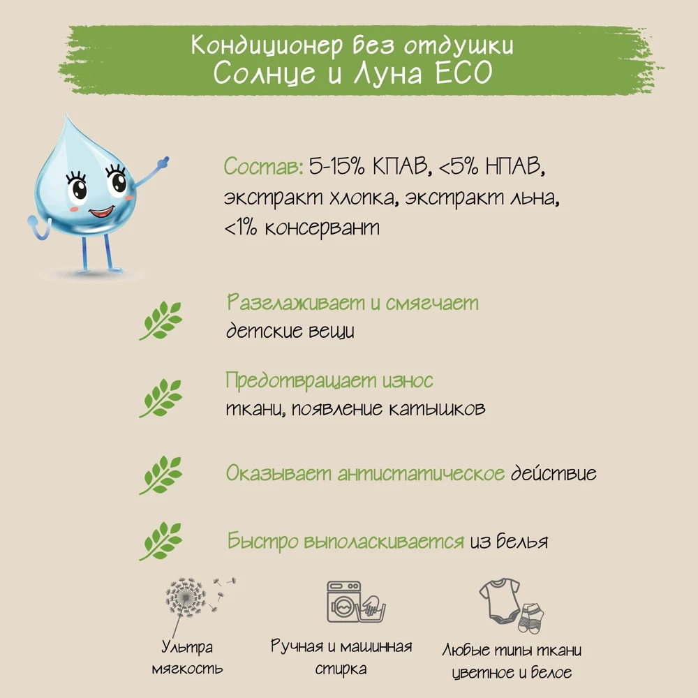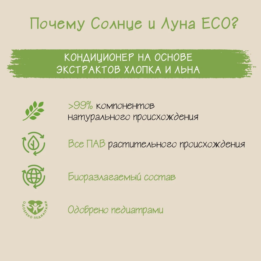 Гипоаллергенный кондиционер для детского белья (одежды, пеленок, постельного белья, полотенец) без отдушки с экстрактами хлопка и льна специально разработан для детей с первых дней жизни и людей с чувствительной кожей.