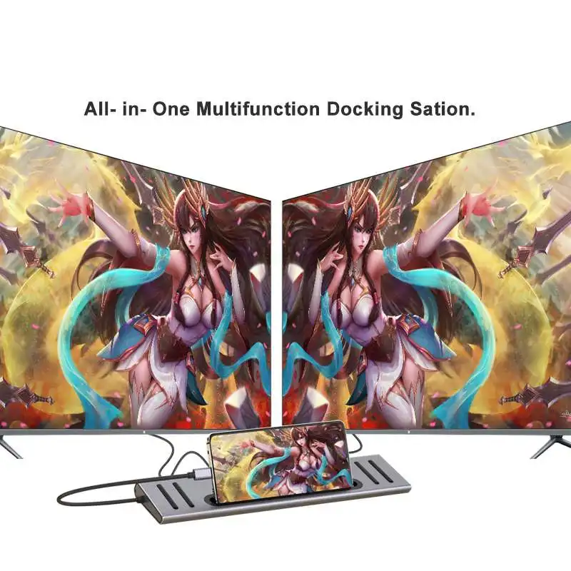 12 портов: 2HDMI + 1Rj45 1000 Мбит/с + 2Type c + 4USB3.0 + 1SD/1TF + 1 AUX Jack 3,5 мм