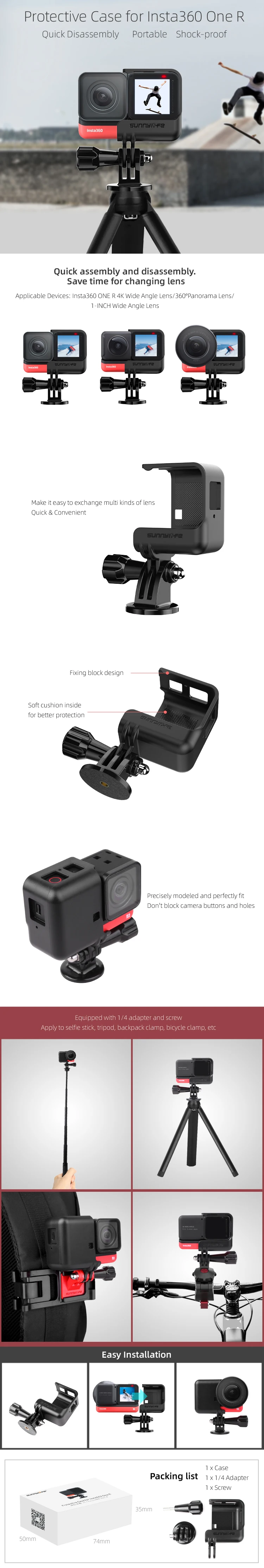 3. Подходит для Insta360 один R 4K широкоугольный мод, 360 mod и 1-дюймовый широкоугольный мод;