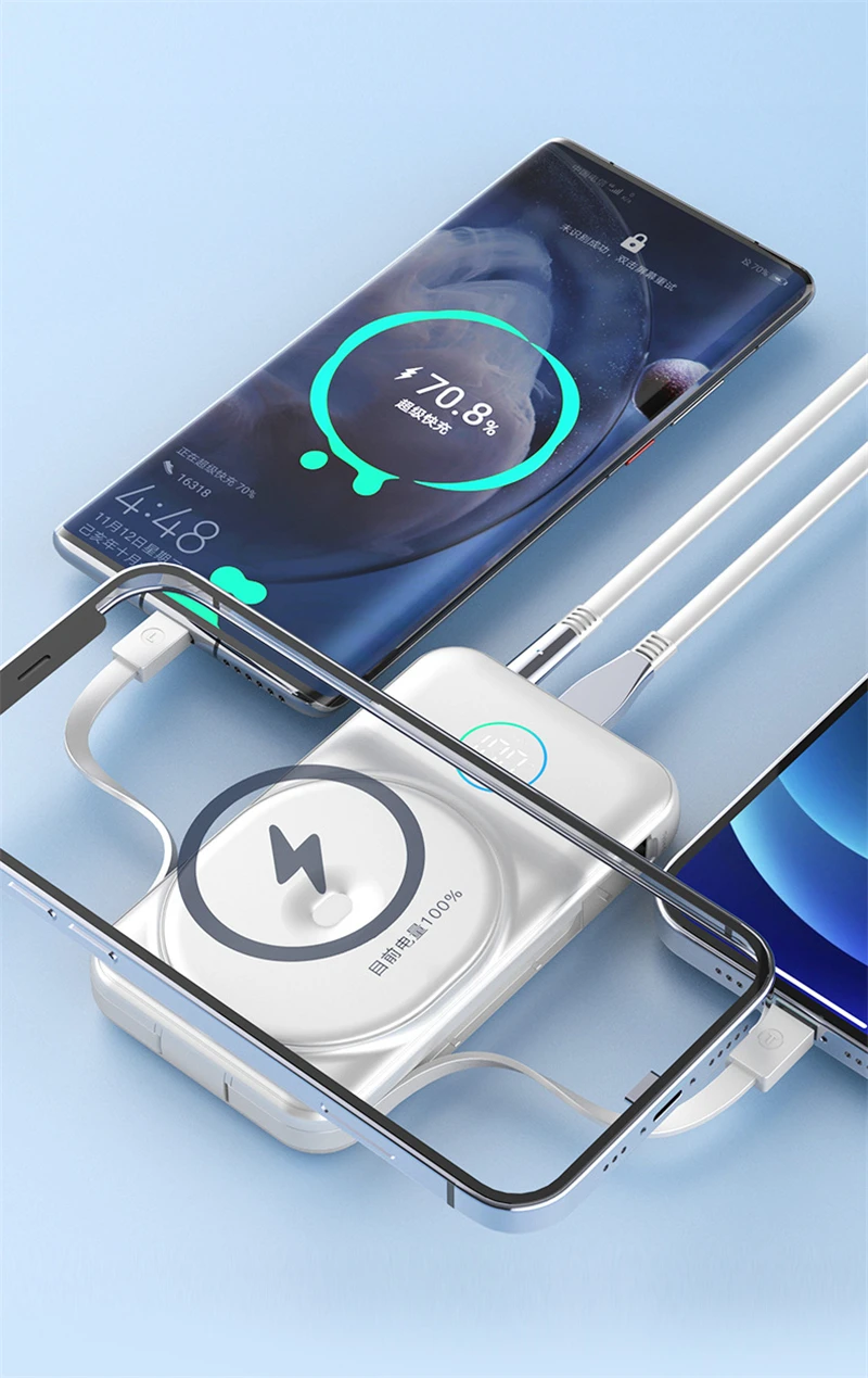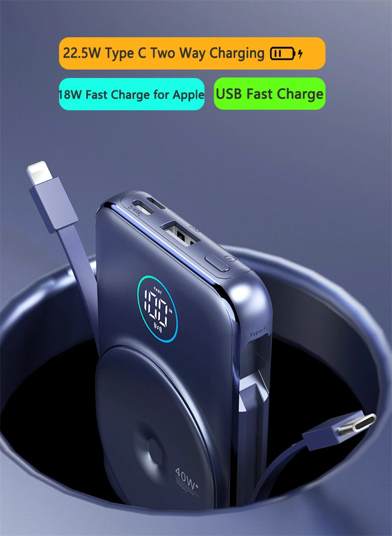 20000 мАч магнитное Беспроводное зарядное устройство Qi Встроенный кабель PD 40 Вт Быстрая зарядка для iPhone 13 12 11 Huawei Xiaomi Powerbank