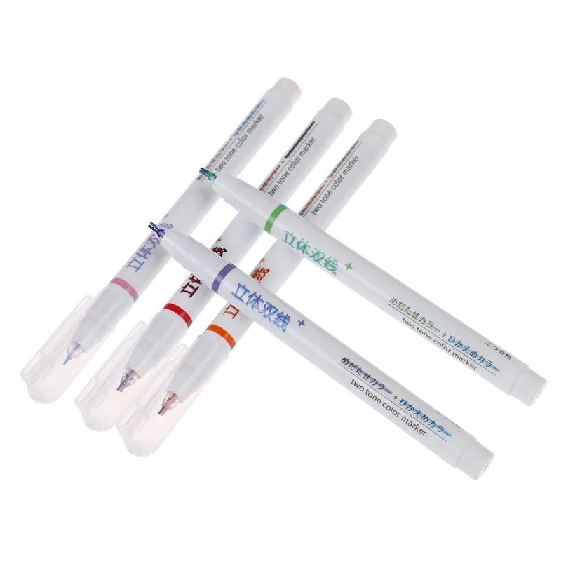 6 ручек 2 линии набор ручек двойная линия подводка для рисования чернила для воды красный синий цвет наконечник искусство лом