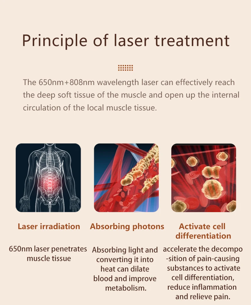 Лазер длиной волны 650 нм + 808 нм может эффективно достичь глубокой мягкой ткани мышц