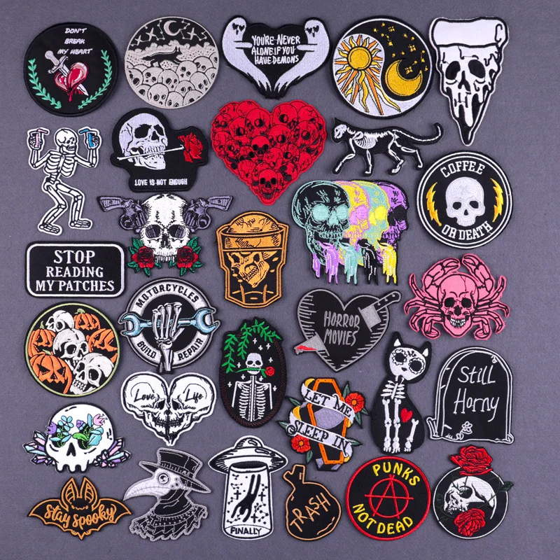 Череп Скелетон вышитые патчи для одежды термоклейкие патчи в стиле панк железные патчи на одежду наклейки значки DIY