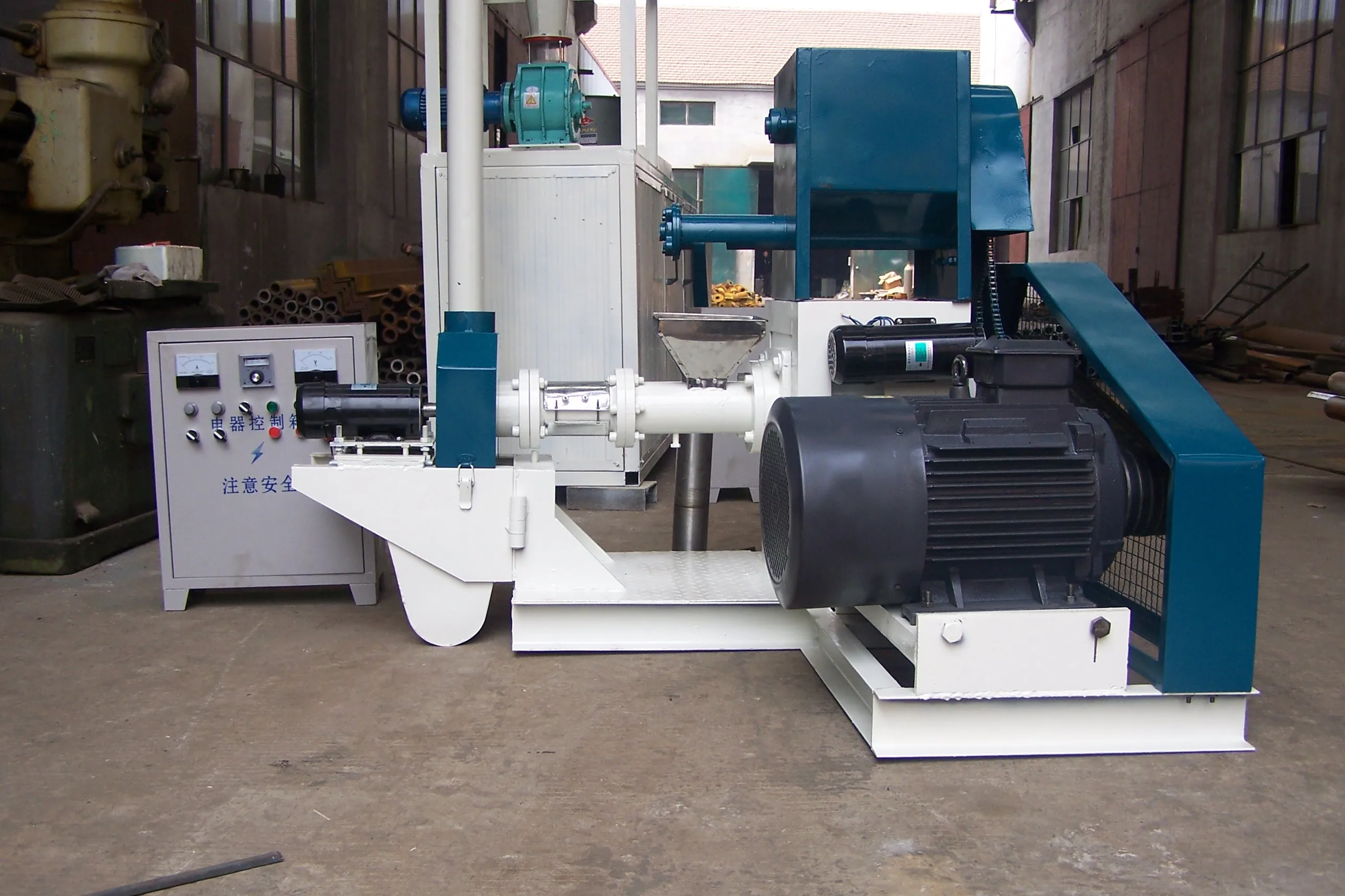 * Эта Подающая машина может обрабатывать кукурузу, сою (соевый торт) и т. д. поместите материалы в экструдер, чтобы производить различные кормовые гранулы.
