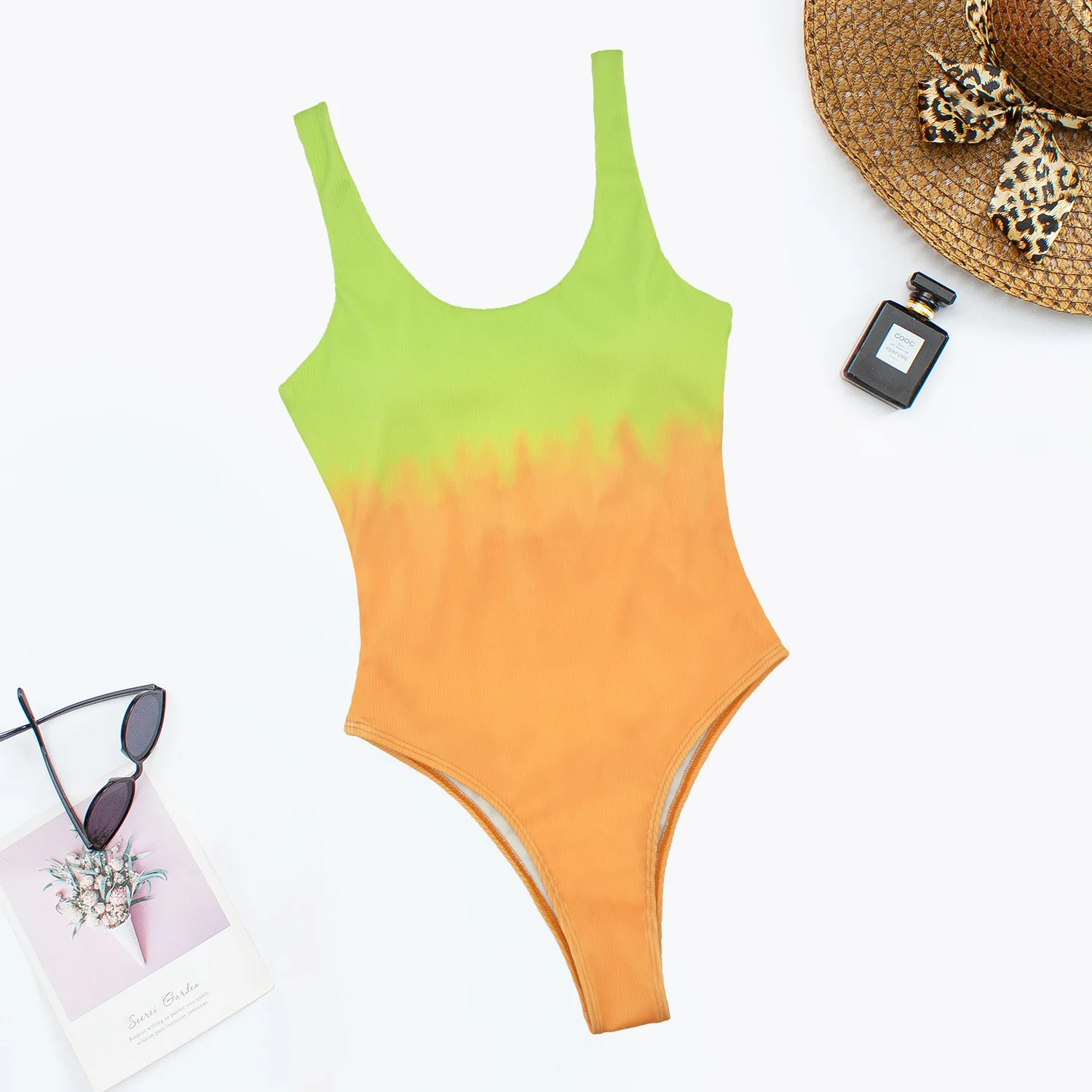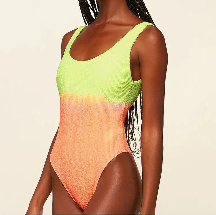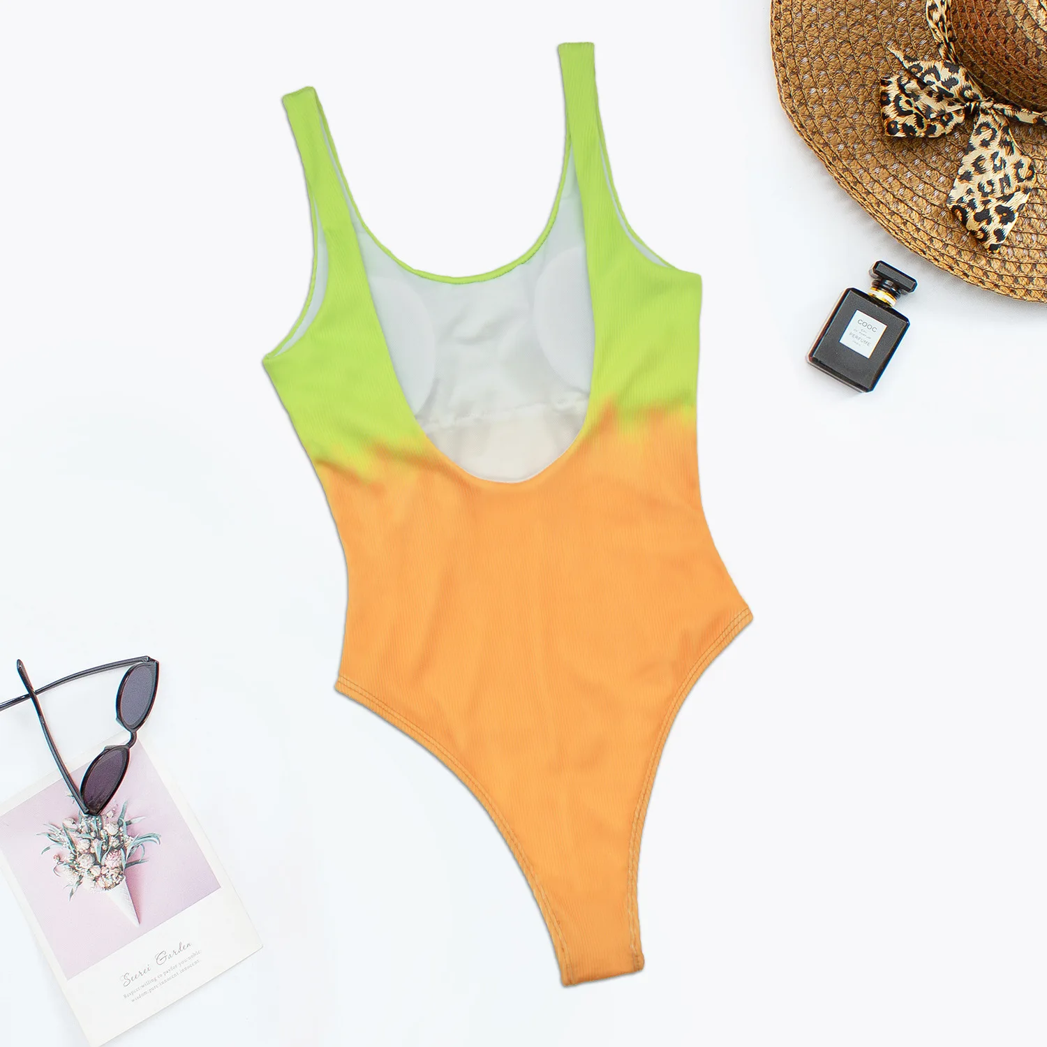 Витрина Девушки Летний стиль купальники пляжная одежда градиент печати ребристые Совок повязки высокой ноги боди Монокини Цельный купальник