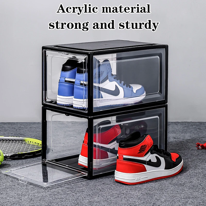 Прозрачная коробка для обуви кроссовки коробка для хранения обуви Органайзер утолщенный может быть наложен Пластиковые акриловые пылезащитные Органайзеры