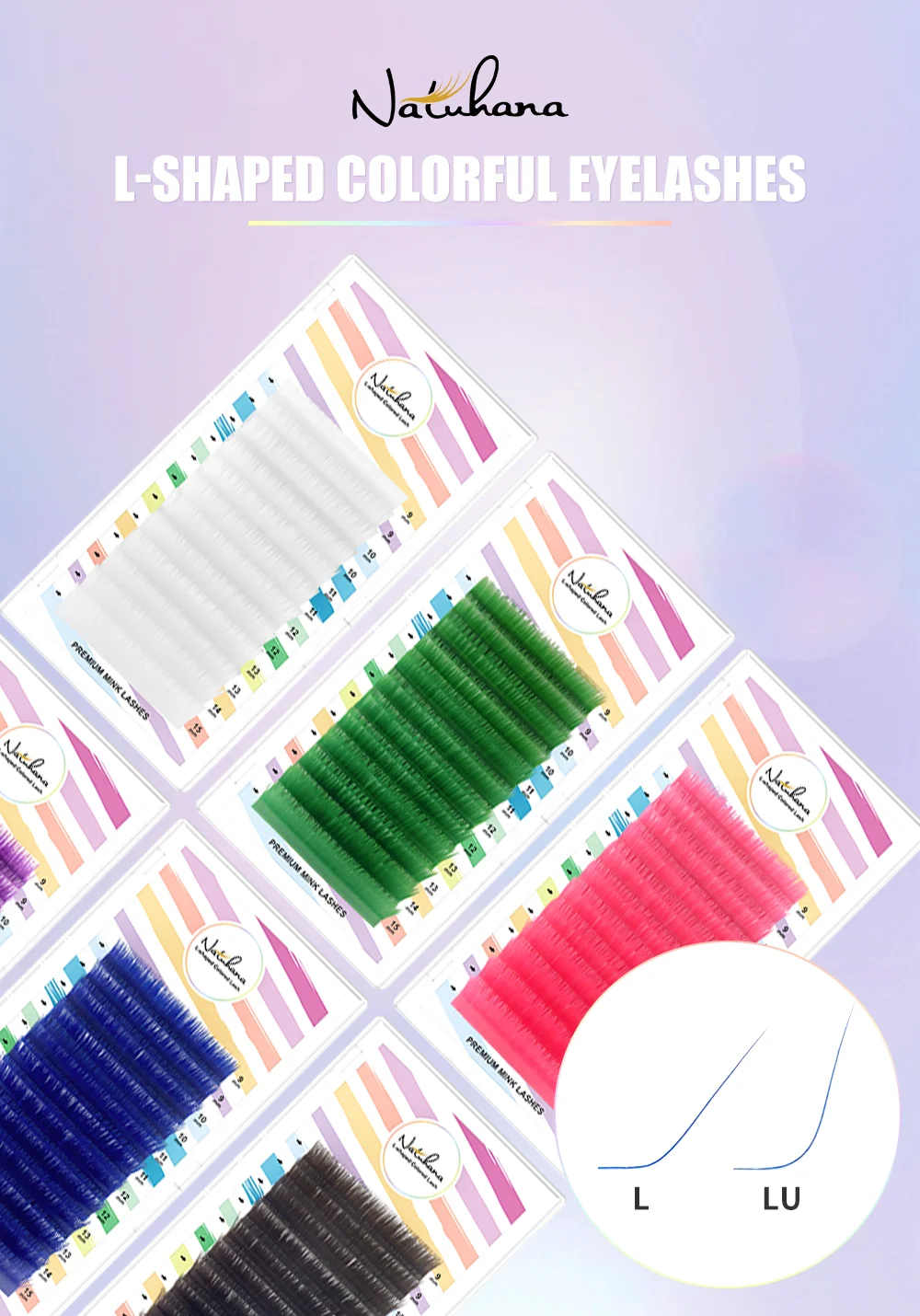 NATUHANA Easy Fan Color ed Lashes L/LU(M) наращивание накладных ресниц индивидуальные Авто веерные цветные норковые ресницы l-образный макияж