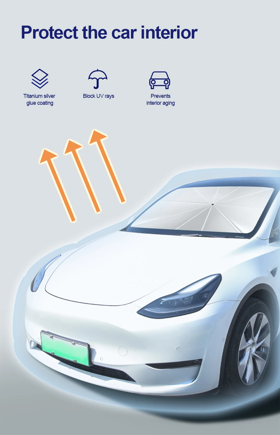 2. Автомобильный зонтик от солнца может эффективно защитить вас от солнечного света и обеспечить вам прохладную среду вождения, держать сидения и приборную панель от растрескивания из-за воздействия солнца.