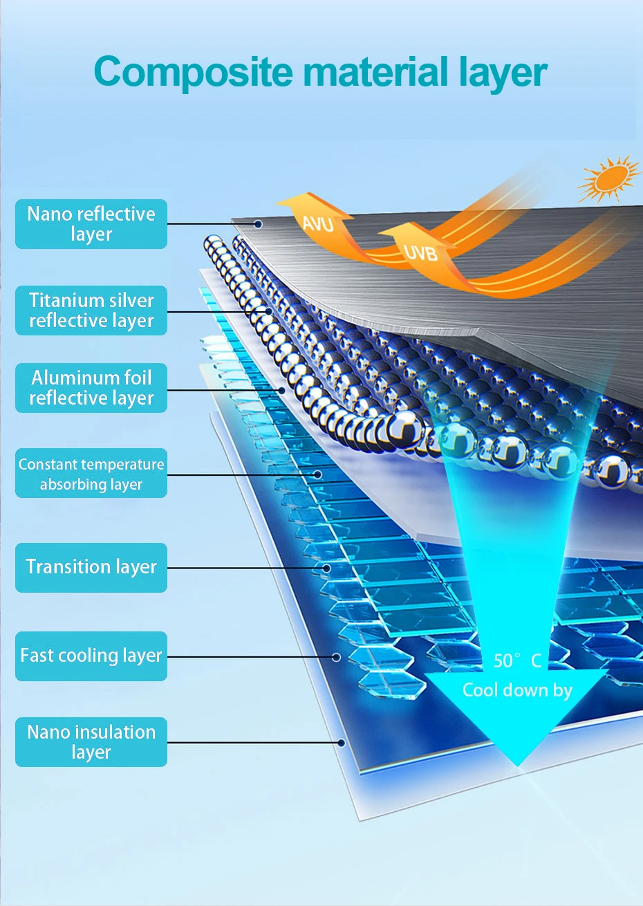 1. Изготовлен из высококачественного материала, этот зонт от солнца является теплоизоляцией, УФ-блоком и надежным в использовании для длительного обслуживания.