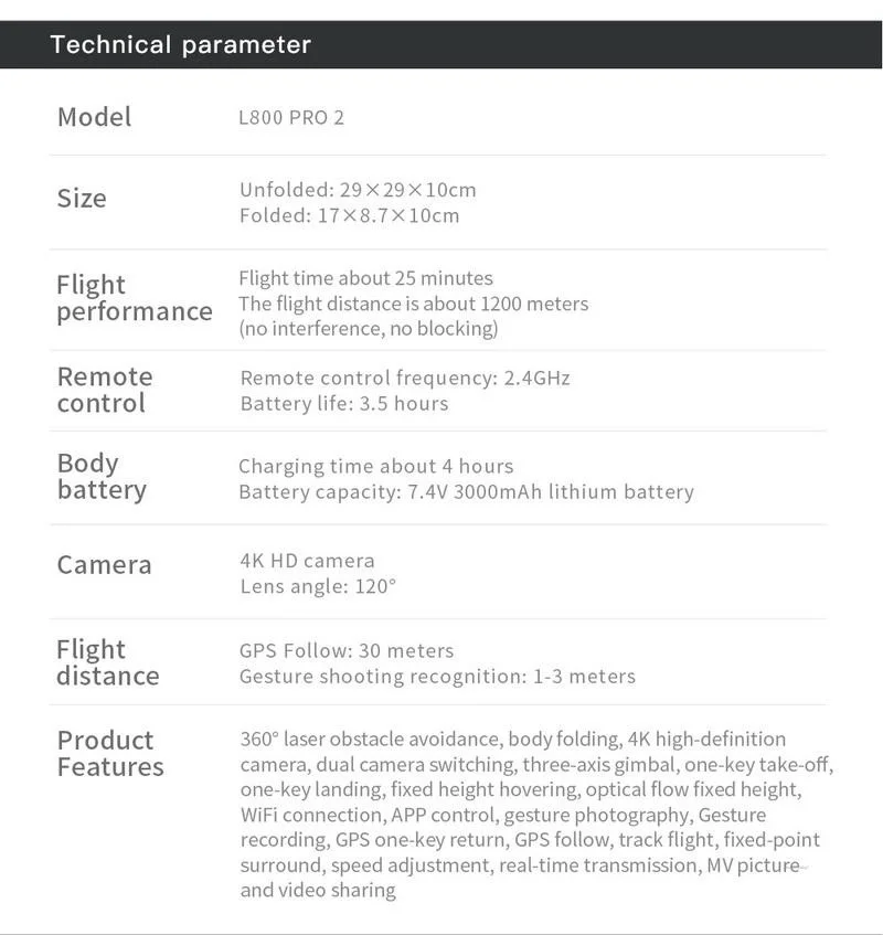 2.L800 PRO 2 (версия для избегания препятствий), L800 (версия для избегания препятствий)