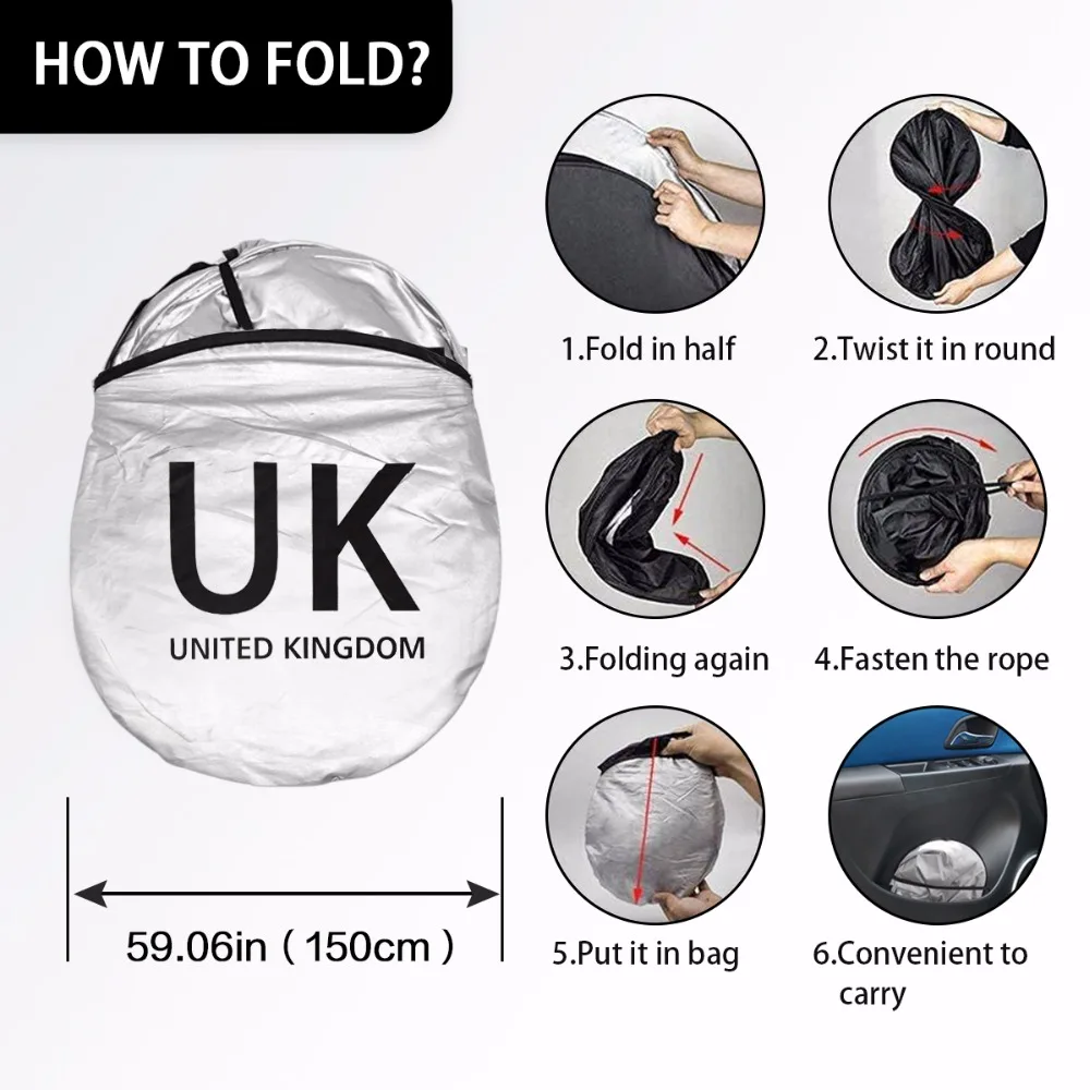 4. Солнцезащитный козырек автомобиля-это отличная помощь в защите вещей в автомобиле, когда он открывается, покрывает все ветровое стекло и создает прохладную среду в жаркое лето. Идеально для переднего и заднего лобового стекла автомобиля. Скручивается, чтобы сложить в меньший размер для хранения.