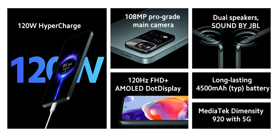 120W HyperCharge | 108MP pro-grade Основная камера | 120Hz FHD + AMOLED DotDisplay | Двойные динамики, звук от JBL | MediaTek Dimensity 920 с 5G | Высокопроизводительный процессор 6 нм