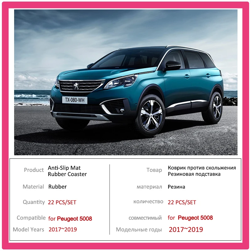 Резиновый стикер коврик для Peugeot 5008 5008GT T87 2017 ~ 2019 Нескользящая Пылезащитная дверь паз чашки колодки ворота Слот для хранения интерьера автозапчасти