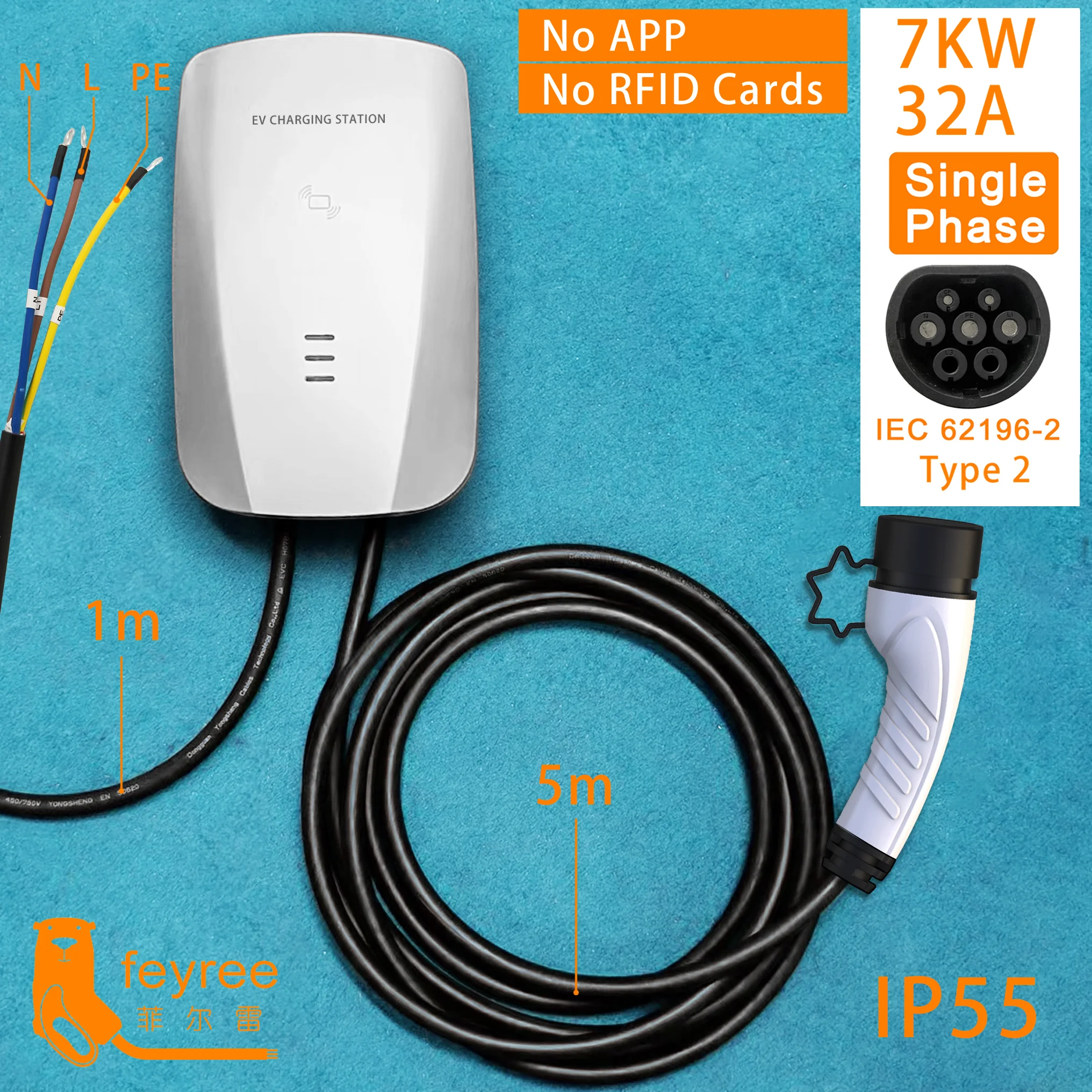 2. Стабильная и Быстрая зарядка -- 32A AC зарядные станции поддерживают установку и использование внутри помещений и вне помещений. Для полной зарядки электромобиля обычно требуется около 7 часов. Подходит для всех стандартных IEC62196-2 типа 2,Станция использует корпус из алюминиевого сплава и легированную пластину, чтобы быть прочнее. Режим пуска кнопки и простая установка.