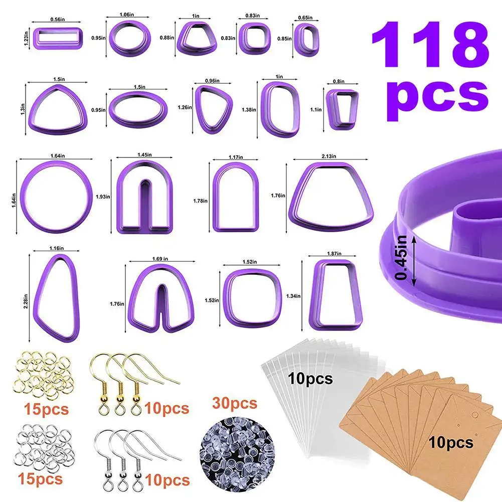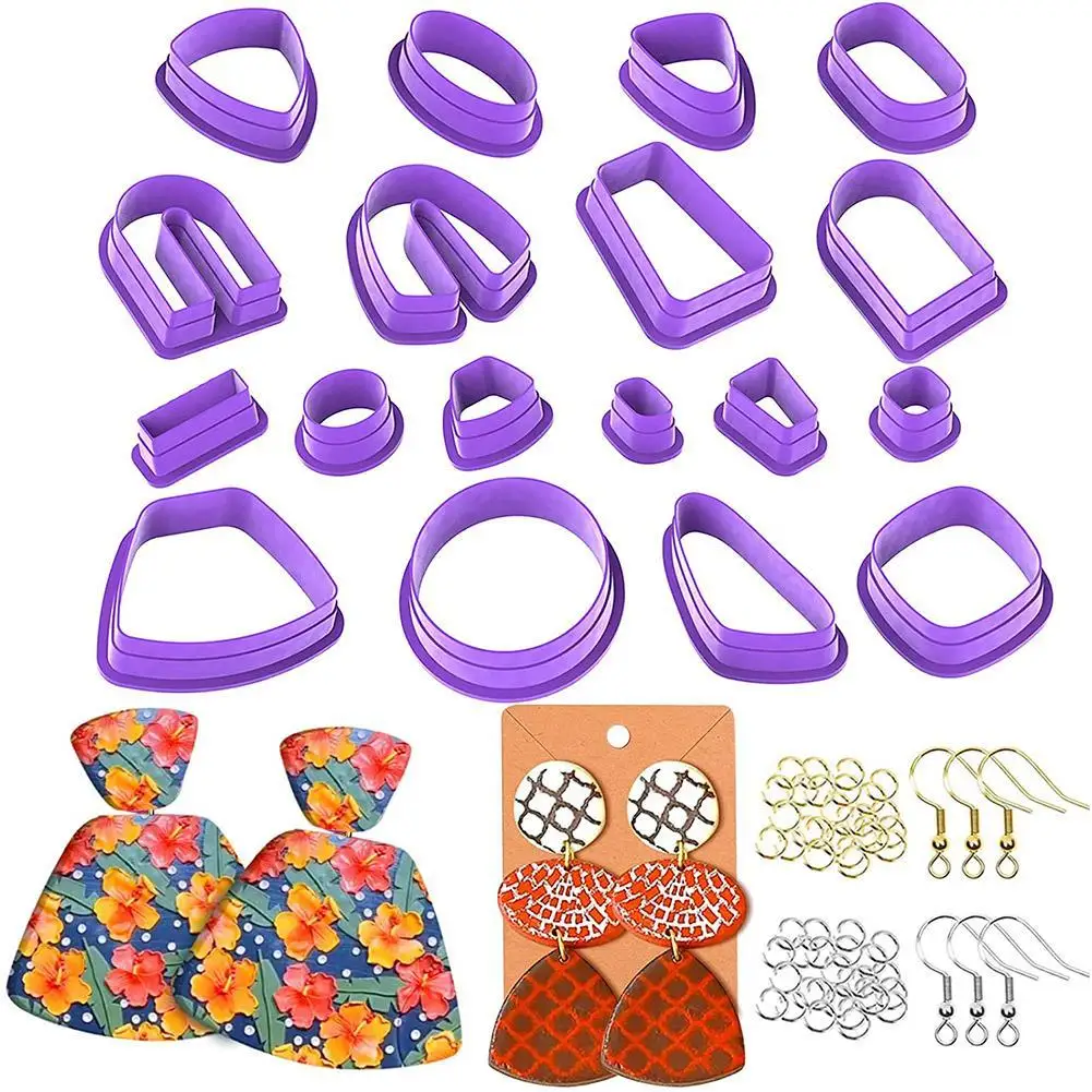 Набор инструментов из полимерной глины: посылка включает 18 глиняные фрезы из полимерной глины, 20 крючков для сережек (10 золотых и 10 серебряных) и 30 колец (15 золотых и 15 серебряных), 30 сережек 10 шт. карт для сережек и 10 шт. мешков для самостоятельного запечатывания.