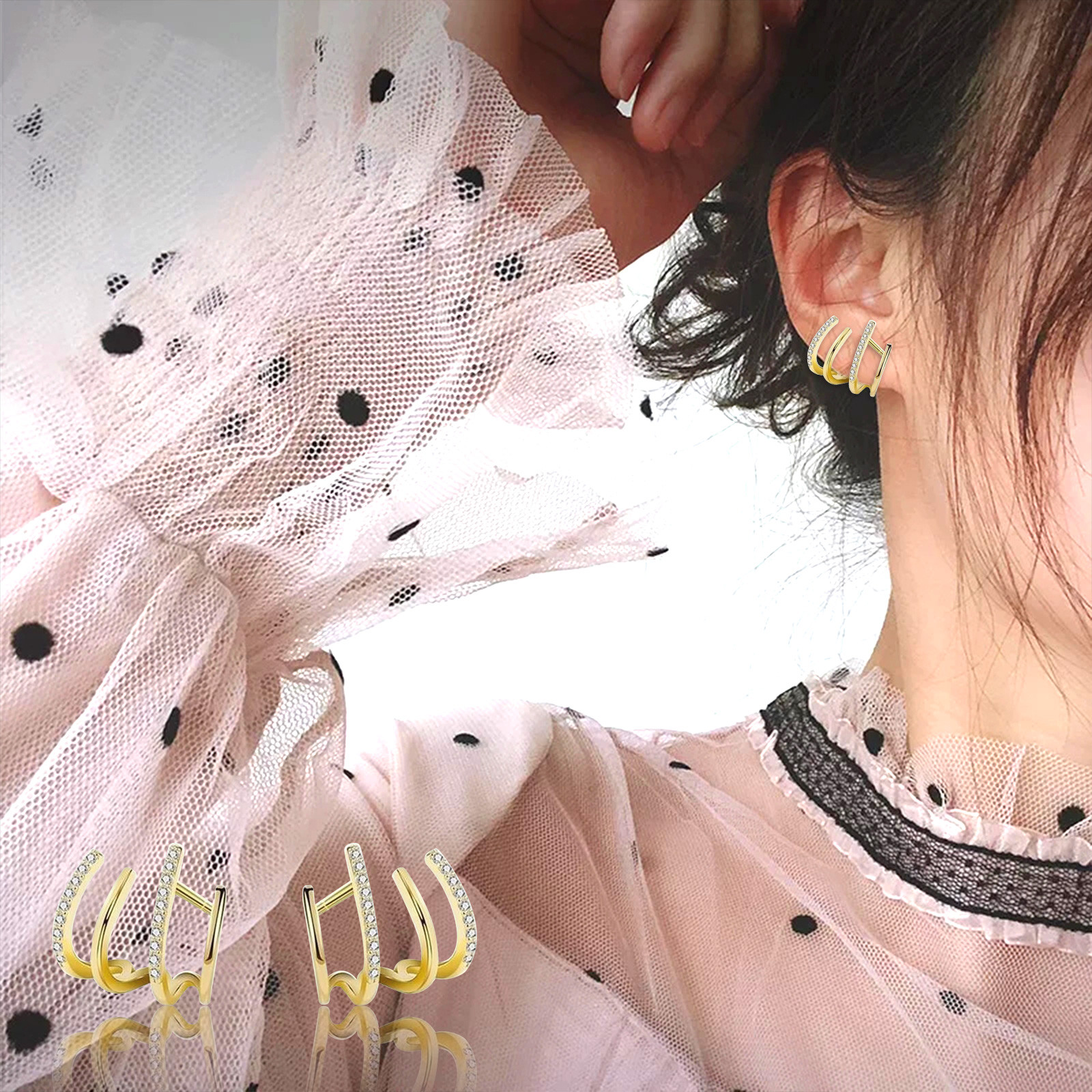 Золотая игла серьги-гвоздики, темпераментные серьги Модные светильник Роскошные модные женские туфли в стиле ретро