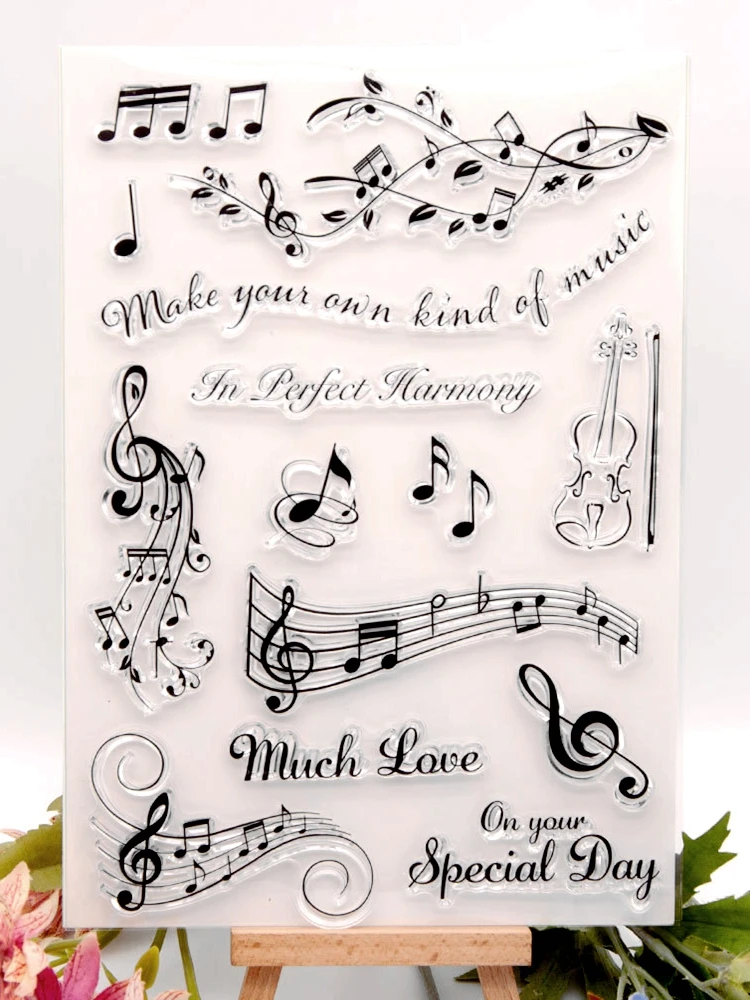 Музыкальная тема, набор резиновых прозрачных штампов для персонала, музыкальные инструменты, штампованные штампованная для скрапбукинга