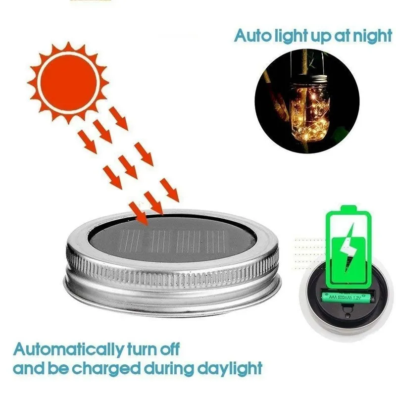 Lights Lid Mason Jar Garden Party Decor Fairy 20LED Solar Powered String LampProduct DescriptionMason Jar Lid Fairy String Solar Powered 20LED Lights Lamp Garden Party Decor