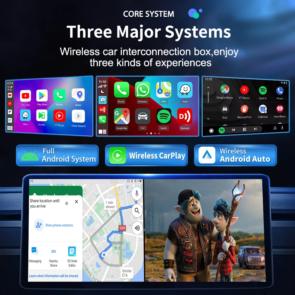 Новейшие технологические инновации, система Android, будут интегрированы в ваш автомобиль! CarlinKit Carplay AI Box поддерживает sim-карту 4G сотовой сети, делитесь своим мобильным телефоном или автомобилем WiFi, затем вы можете смотреть любимые видео на Youtube или Netflix, использовать Google Map, Waze Map для навигации, вы также можете загрузить приложение из Google Play Store, например, Tiktok, Spotify, Google Assistant, Net-flix, Вы-труба, ТВ-шоу и т. Д. И он поддерживает Android системы, беспроводной Android авто и беспроводной CarPlay. Он может поддерживать Android и iphone системы мобильный телефон, не нужно беспокоиться телефон не может использовать его.