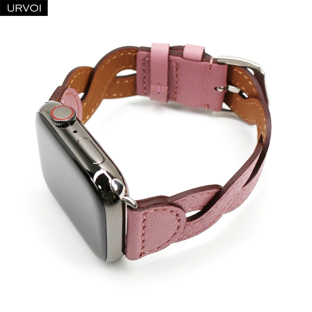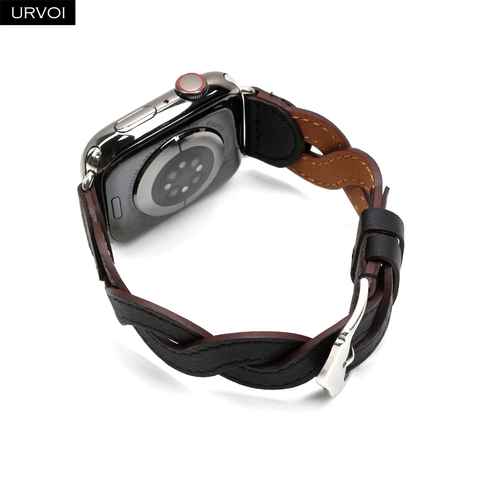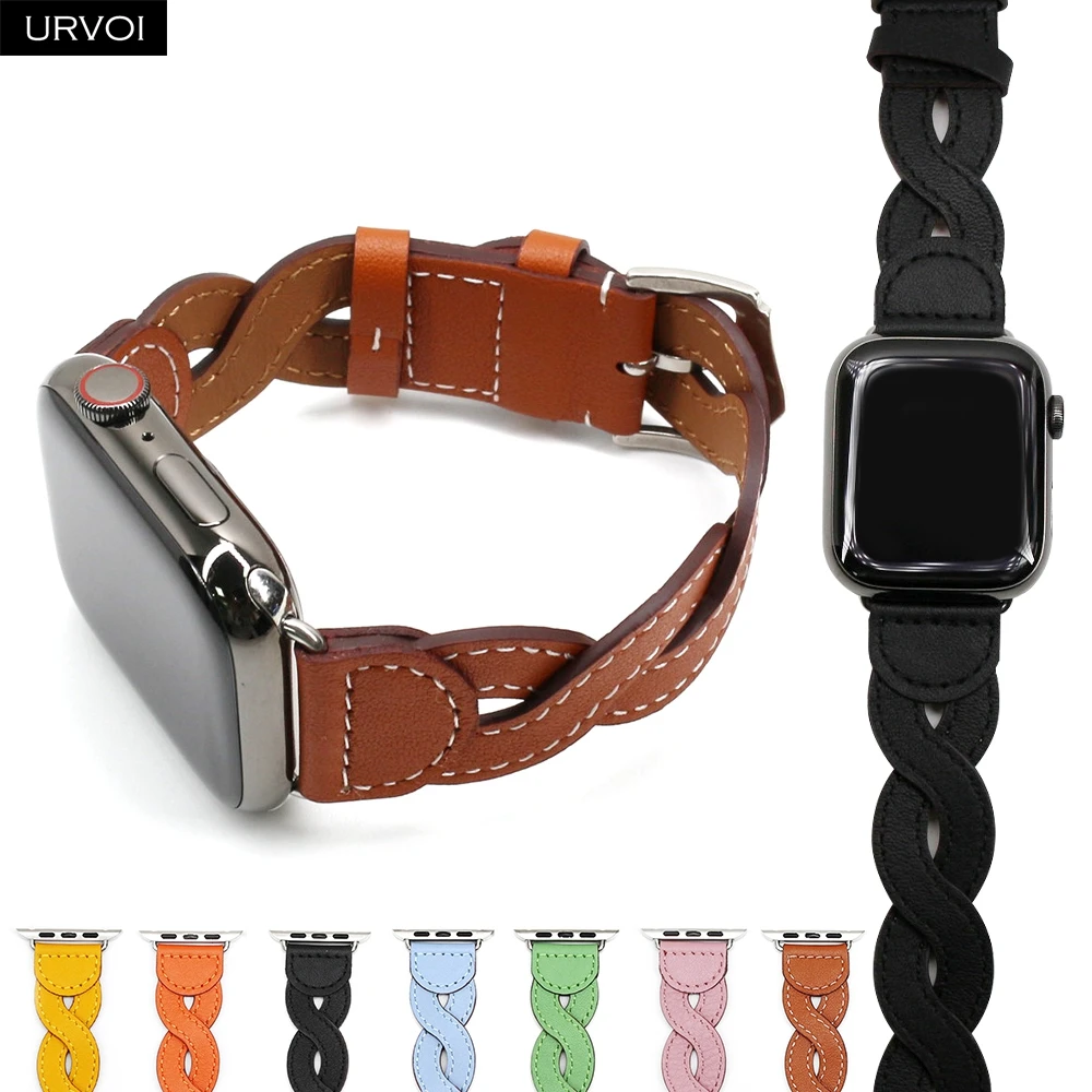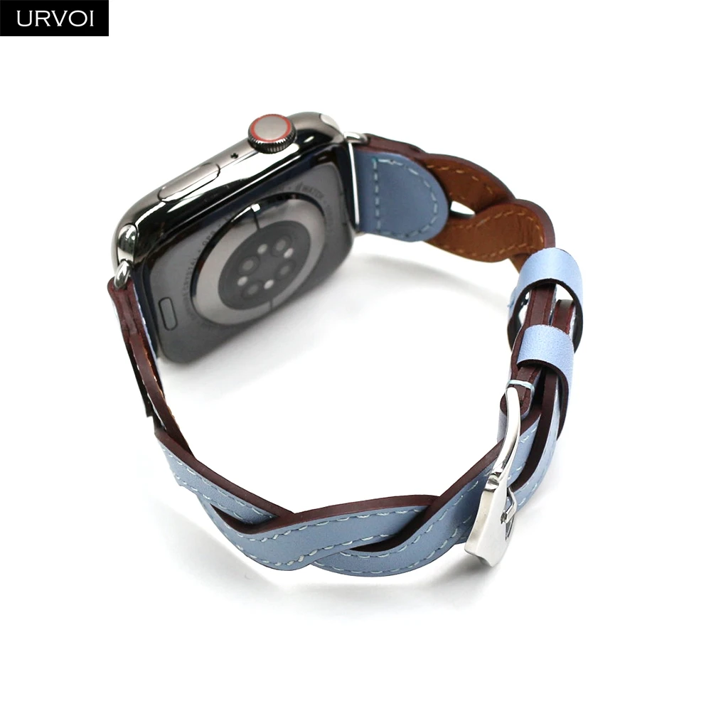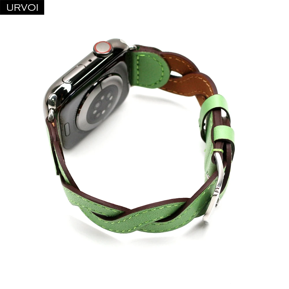URVOI Band для Apple Watch series 7 6 SE 5432 Плетеный ремешок из натуральной кожи для iWatch, дышащие плетеные наручные стильные 41 мм 45 мм