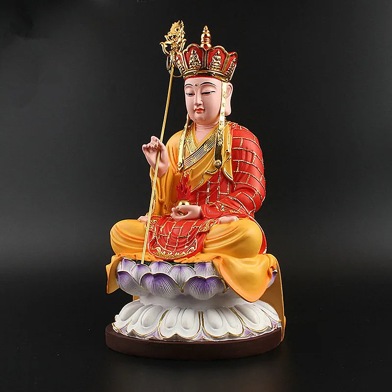 32x17 см желтая позолоченная супер большая статуя Будды Ksitigarbha, резиновая подметальная база демона лотоса, талисман, украшение для дома