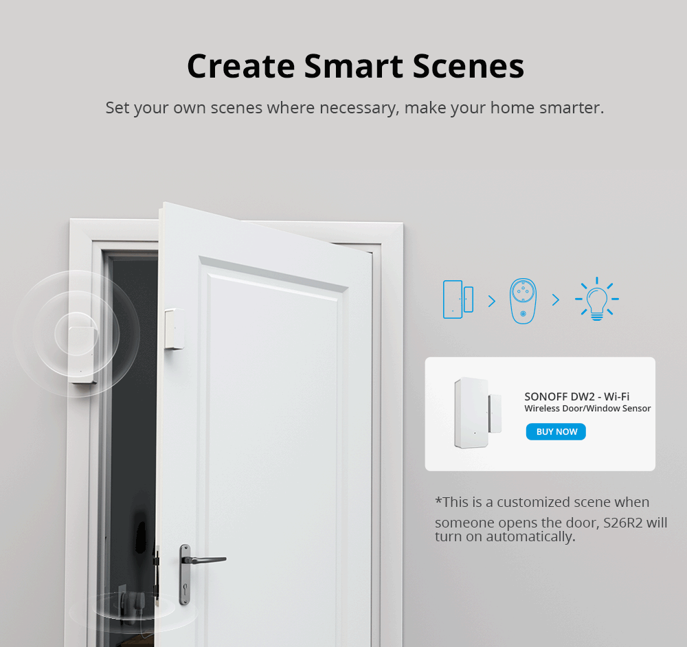 【Пульт дистанционного управления из любого среда】 S26R2 WiFi Plug может включать и выключать подключенные устройства из любого места с помощью приложения eWeLink